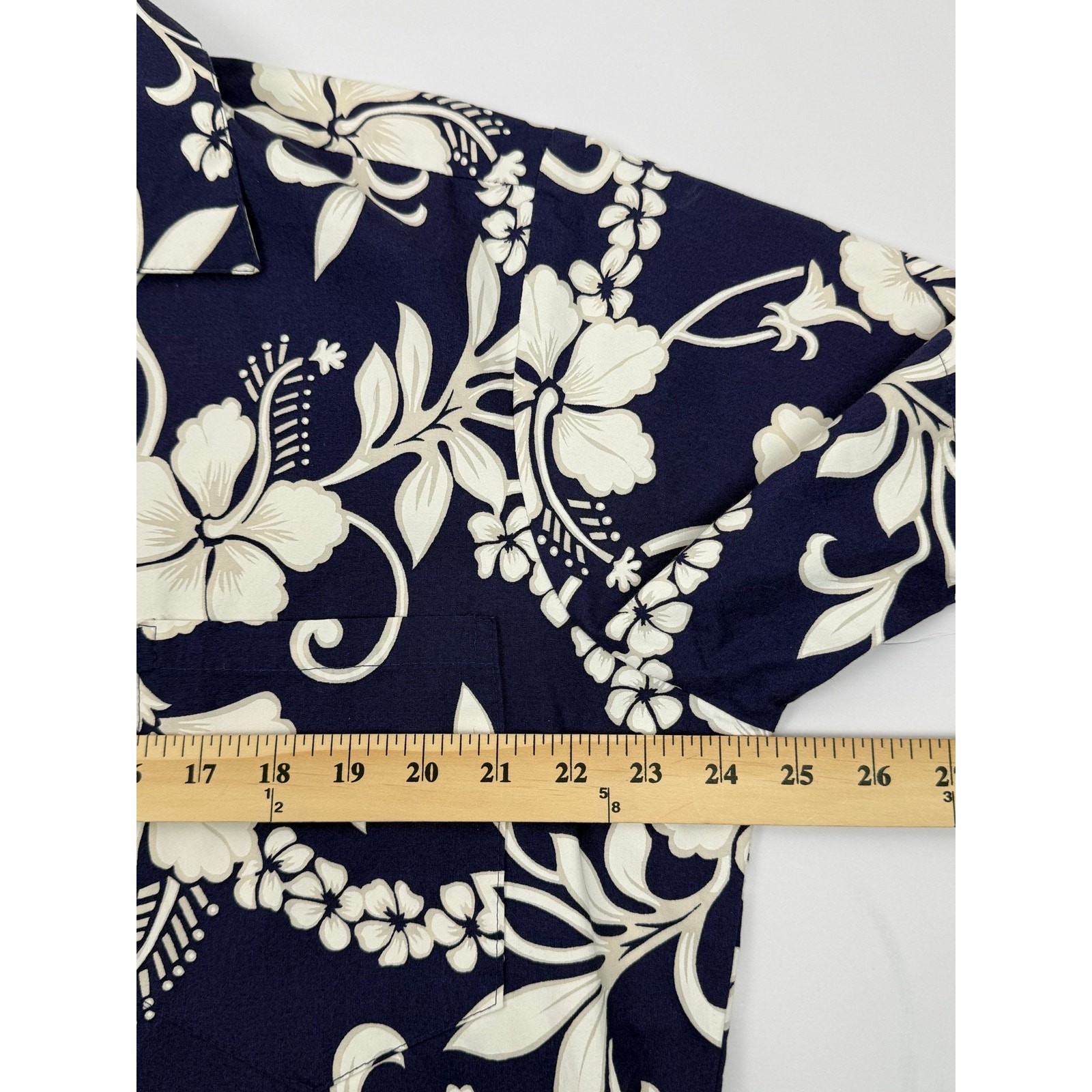 Vintage Hawaiian Original Aloha Shirt Blue Floral Cotton Made Hawaii L