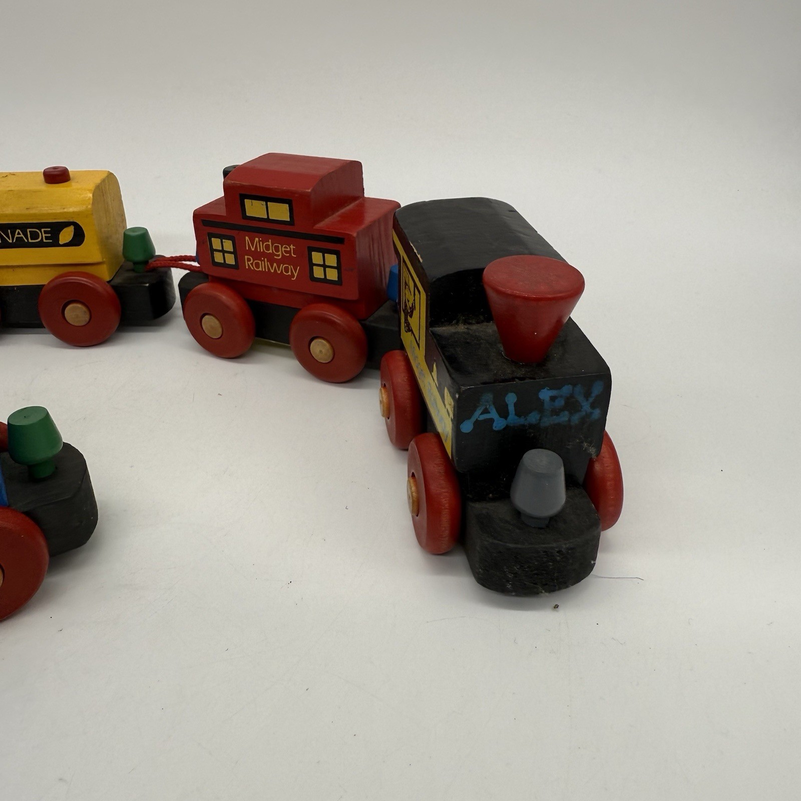 как выглядит The Montgomery Schoolhouse Vermont Midget Railway Wood Train Cars 6 Piece Set фото