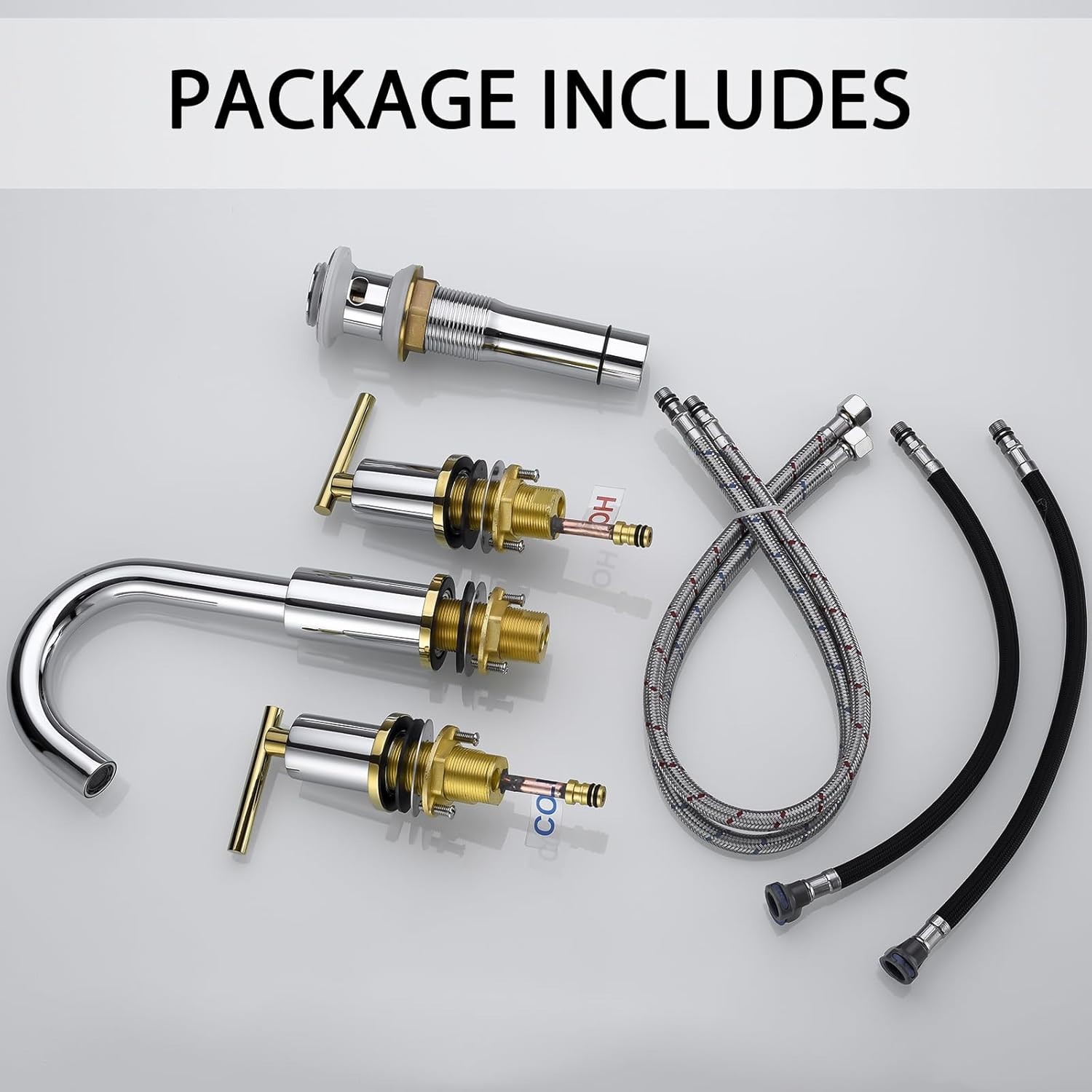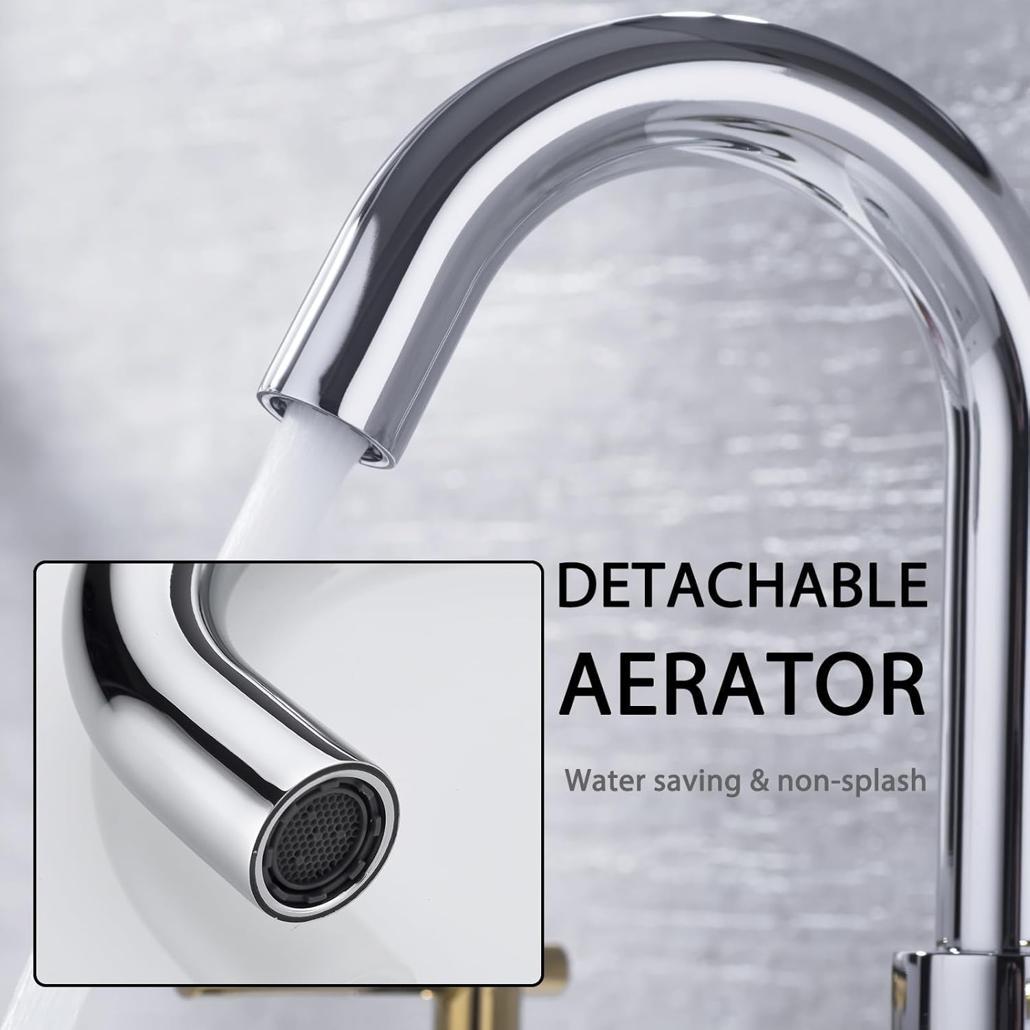 Bathroom Faucet Chrome and Gold 2-Handle 8-Inch Widespread Bathroom Sink Fauc...
