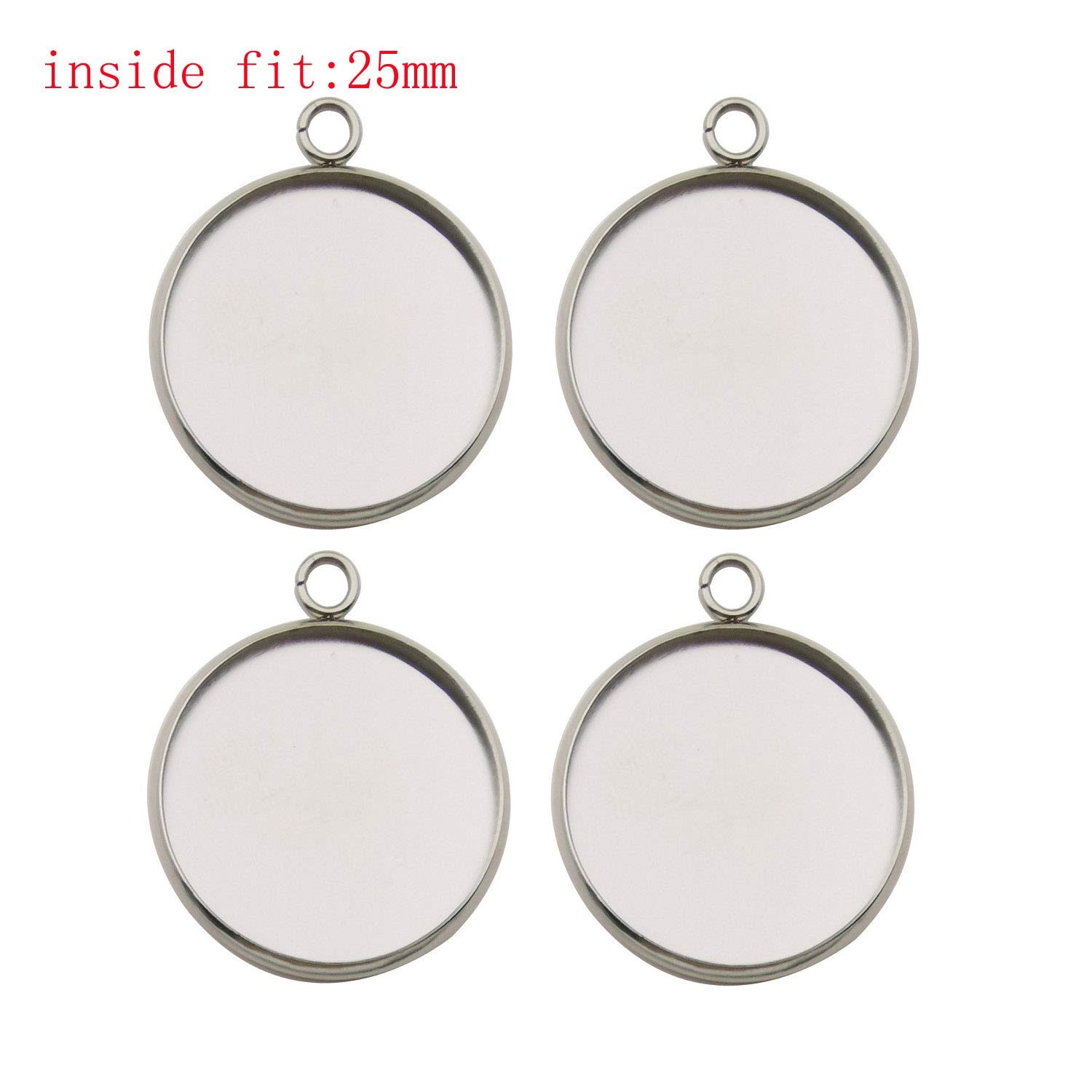 20pcs Fit 25mm Stainless Steel Round Blank Bezel Pendant Trays Base Cabochon ...