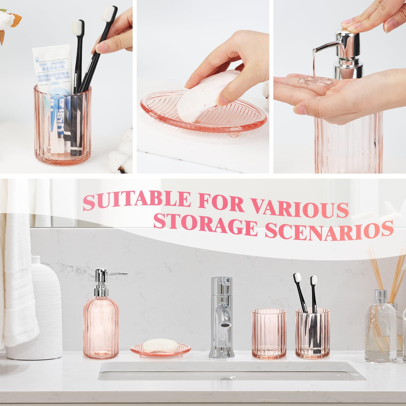 Glass Bathroom Set, 4Pcs Bathroom Sets Complete Lotion Soap Dispenser, Toothb...