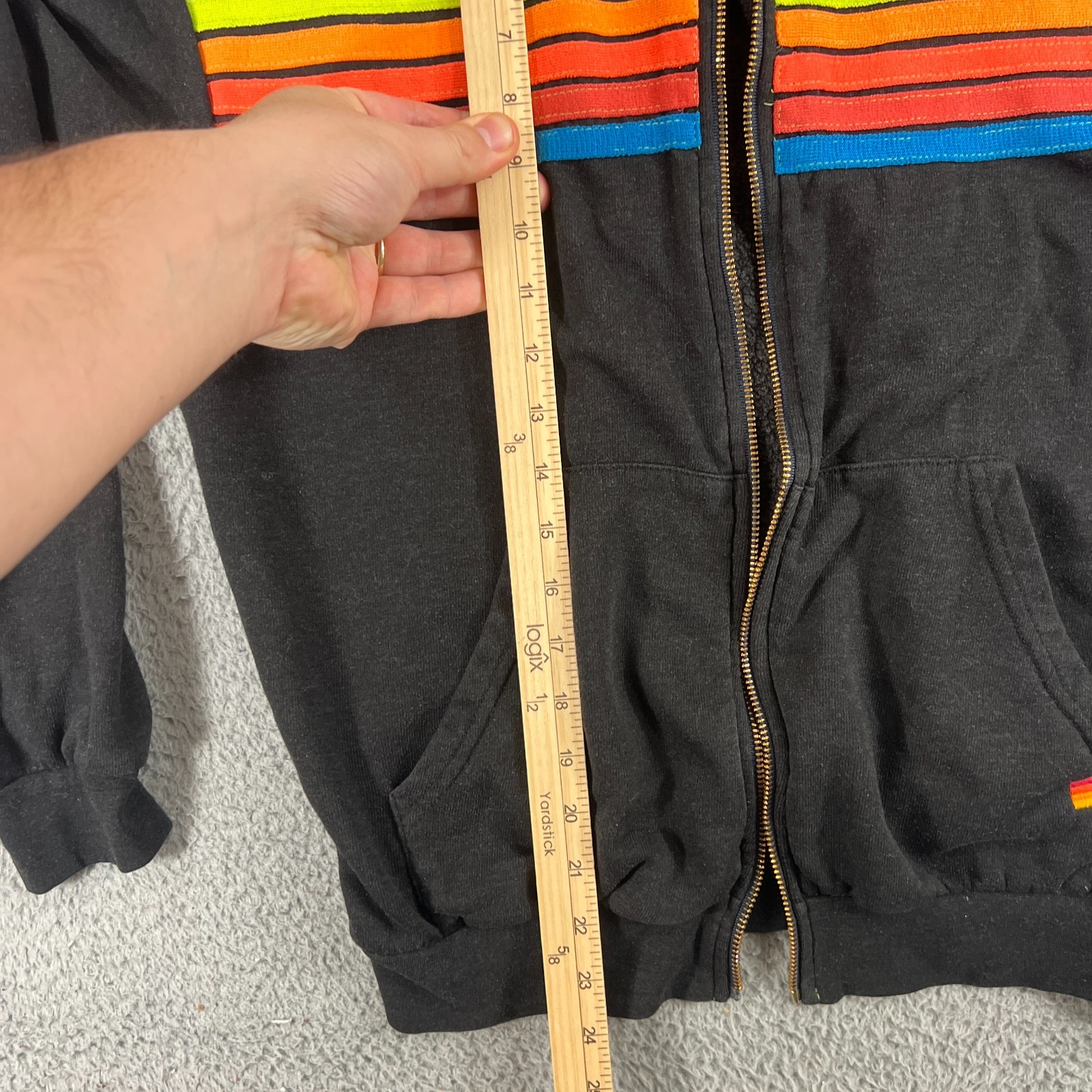 как выглядит Aviator Nation 5 Stripe Full zip Hoodie Womens Size Medium Gray BROKEN ZIPPER фото