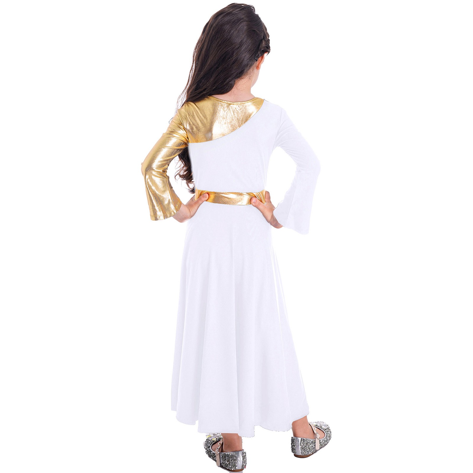 Kids Girls Metallic Robe Dress Lyrical Praise Dance Costume Full Length Church