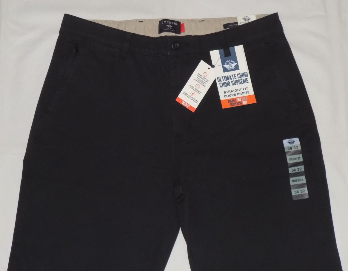 DOCKERS Men's Ultimate Chino 4-Way Stretch Straight Fit Pants Black 36X32 New