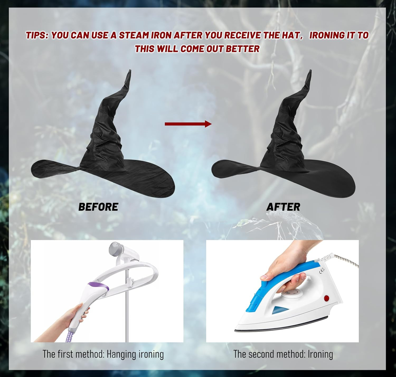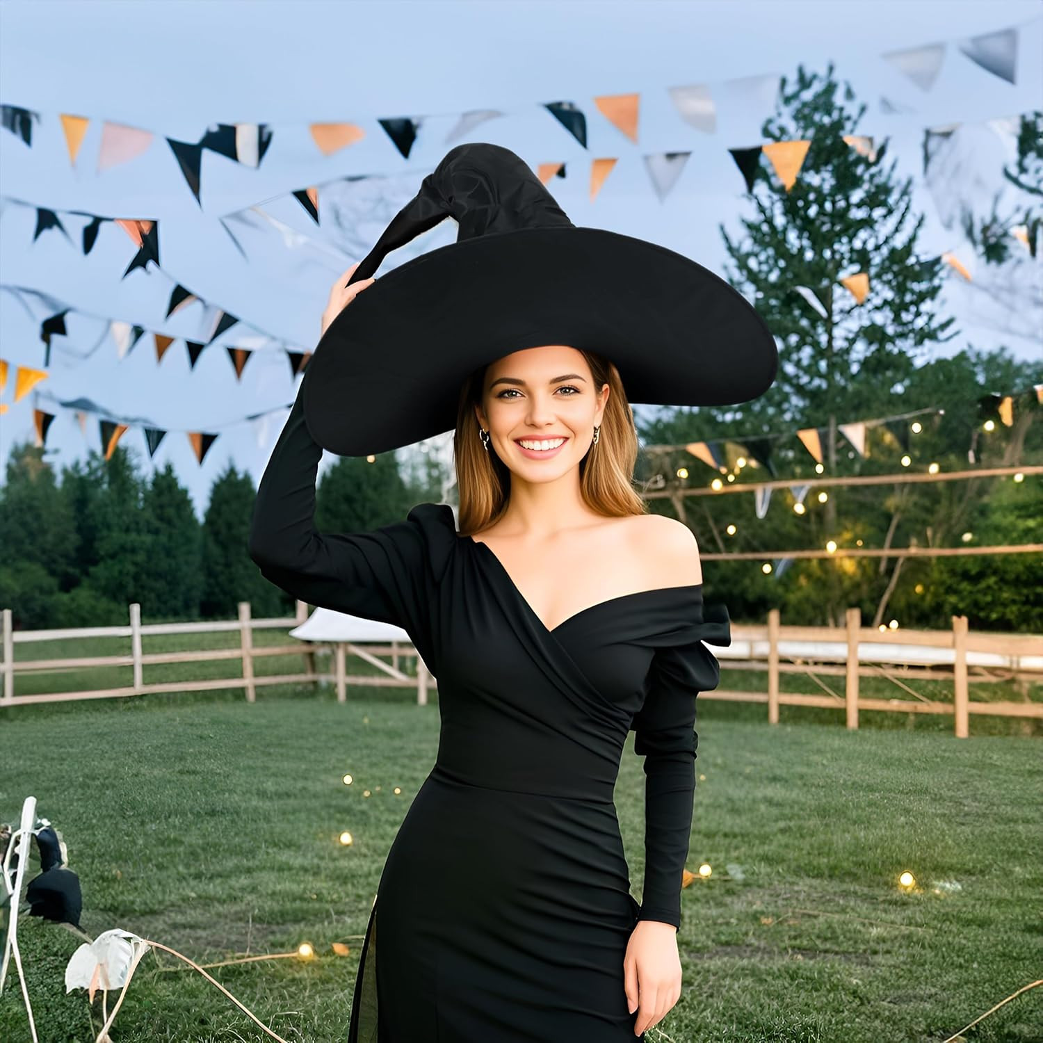 как выглядит WomenS Black Masquerade Ruched Witch Hat Oversized Witches Hats Wide Brim Party фото