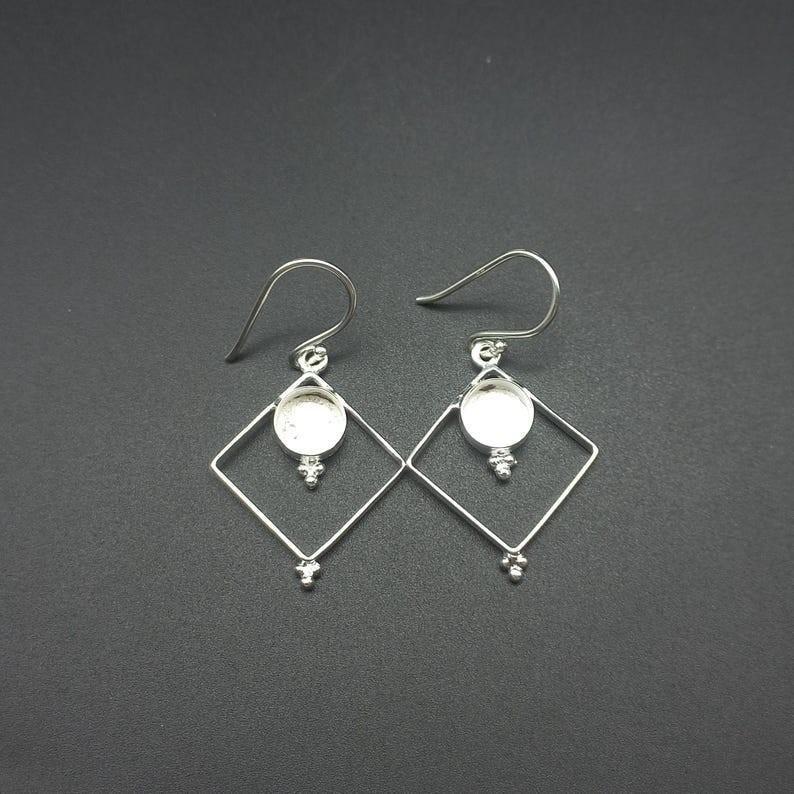 925 Sterling Silver Plated Round Bezel Earring Setting DIY Jewelry Supplies