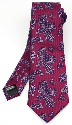 как выглядит Paisley Floral Ties for Men With Handkerchief Woven Classic Red Paisley 2 фото