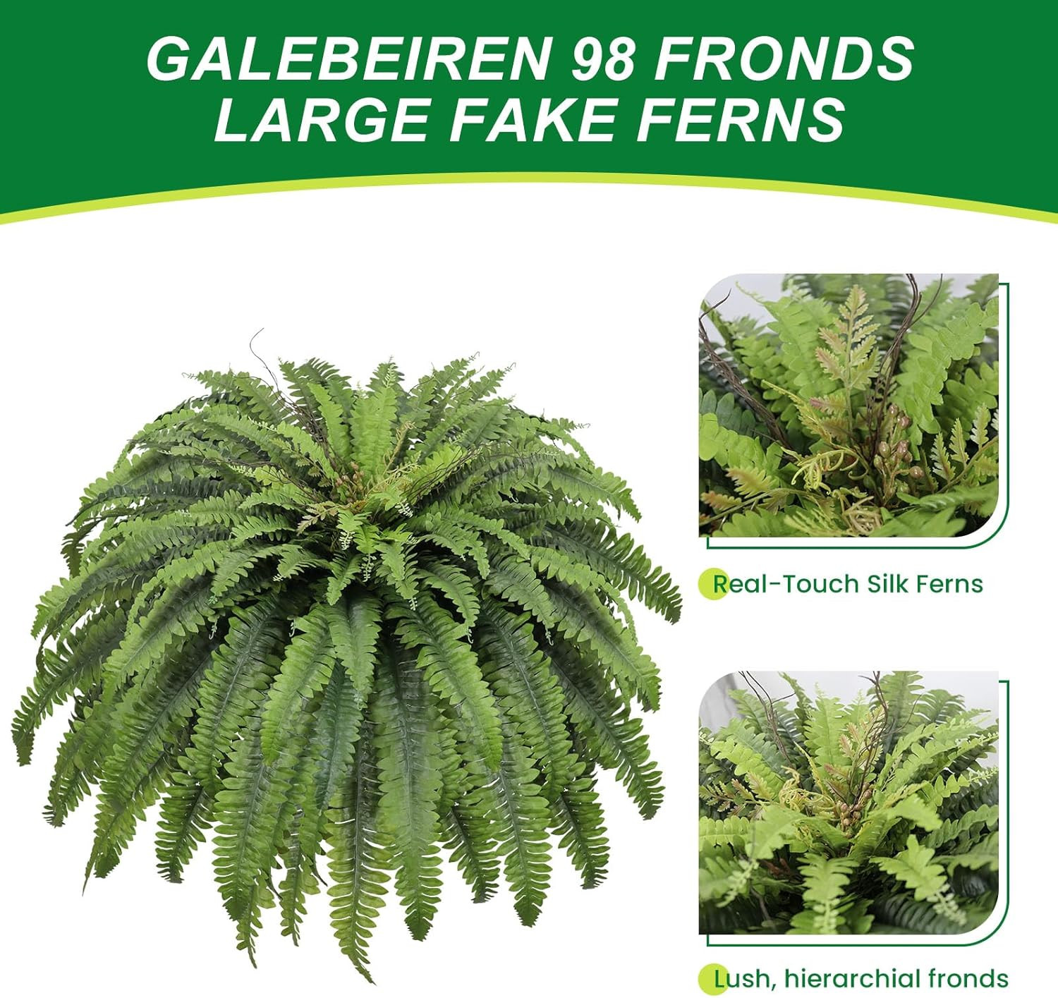 50 Fake Ferns Artificial Plants Large, 98 Fronds Artificial Ferns for Outdoors