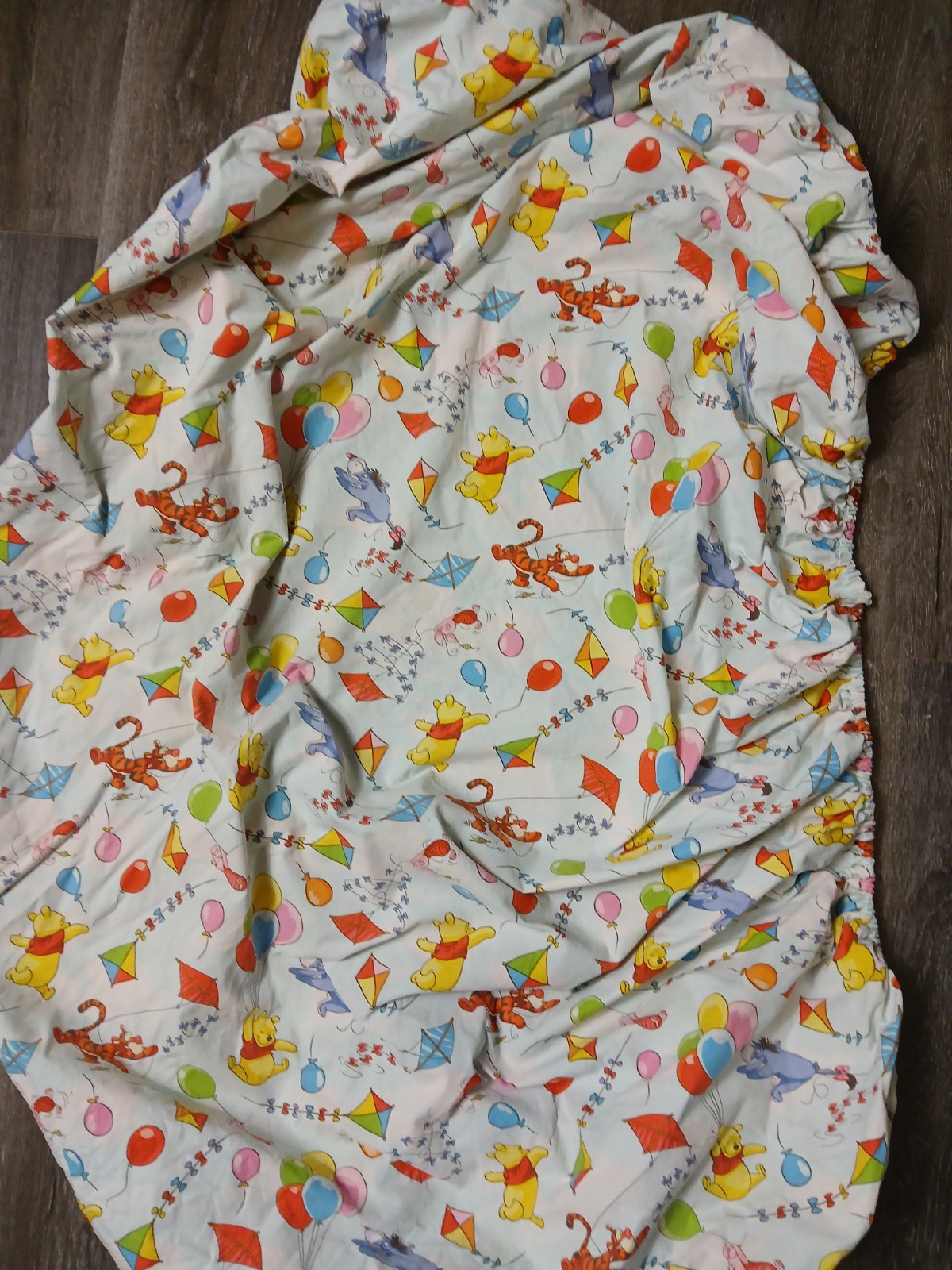 как выглядит VTG Walt Disney Winnie the Pooh Balloon Friends Tigger Piglet Fitted Crib Sheet фото