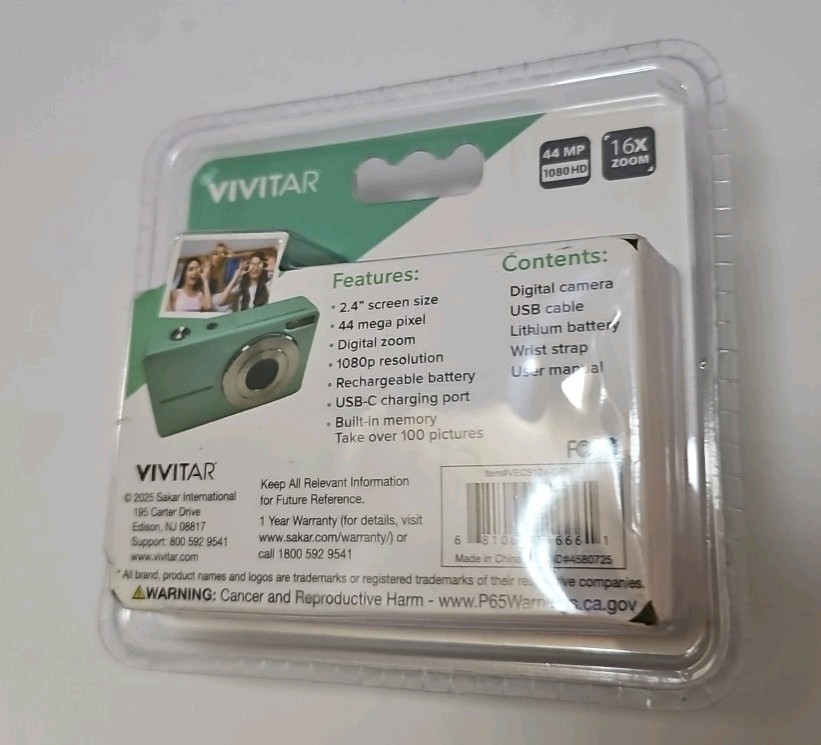 Vivitar Popsnap Compact Digital Camera, Green, 16X Zoom, 1080 HD, New In Package