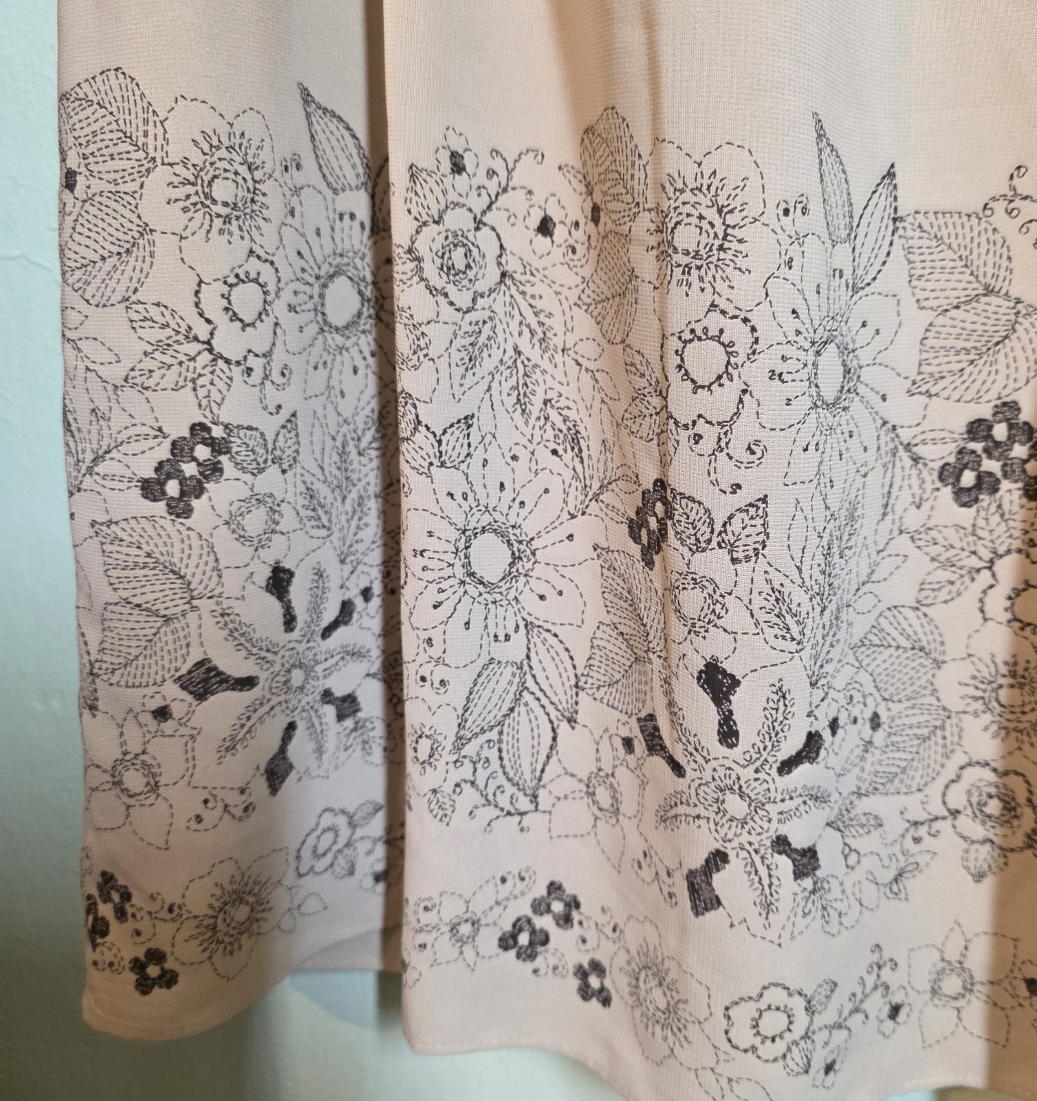 Vintage Y2K Pleated Floral Midi Skirt Sz 10 Tan Floral Hem Print Cottagecore Art