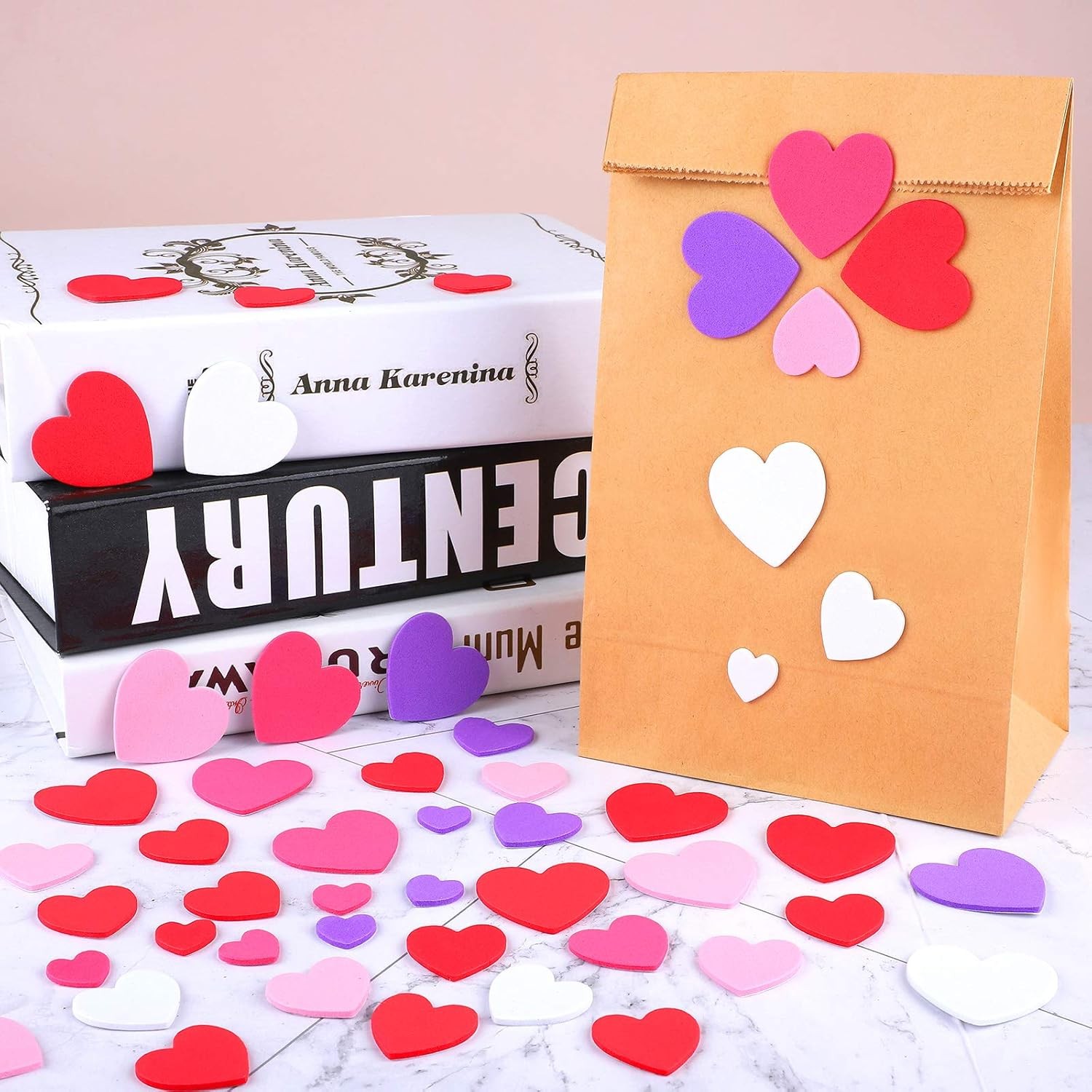 600 Pieces Heart Foam Stickers - Self-Adhesive for Crafts, Valentines