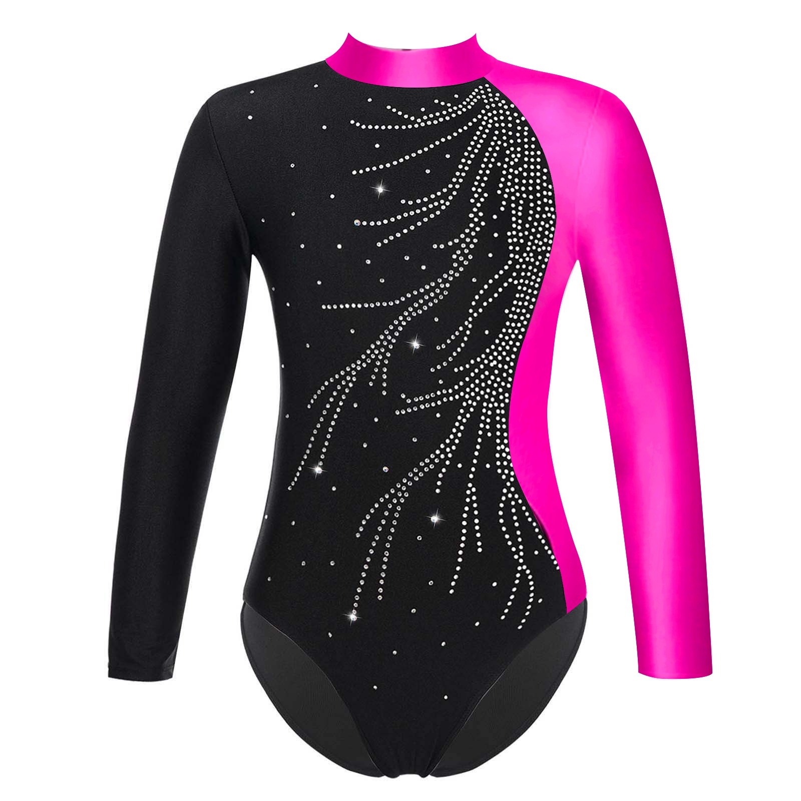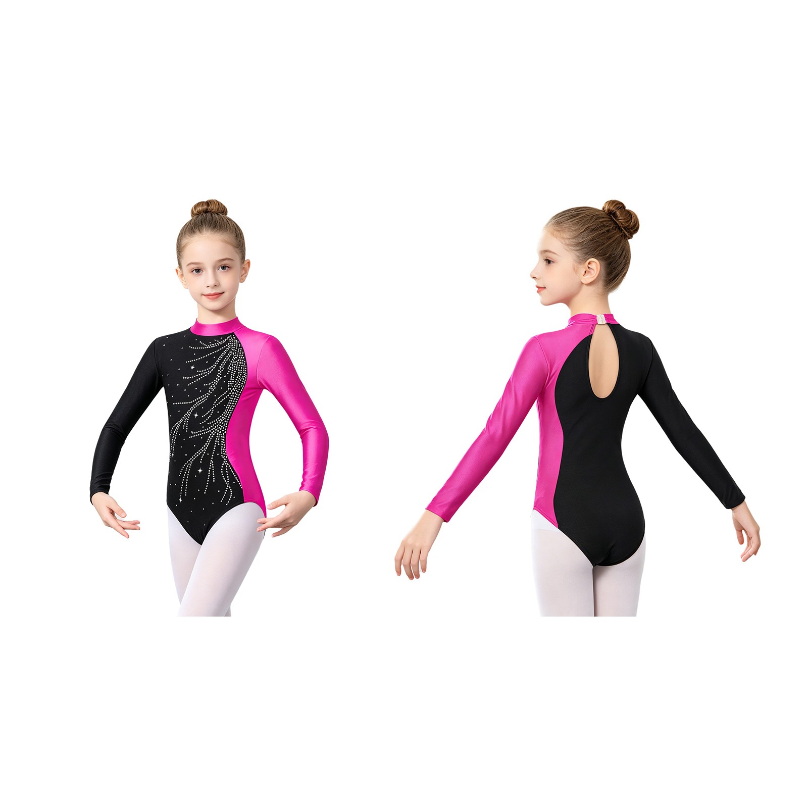 Girls One Piece Shiny Long Sleeve Ballet Dance Leotard Gymnastics Ballroom