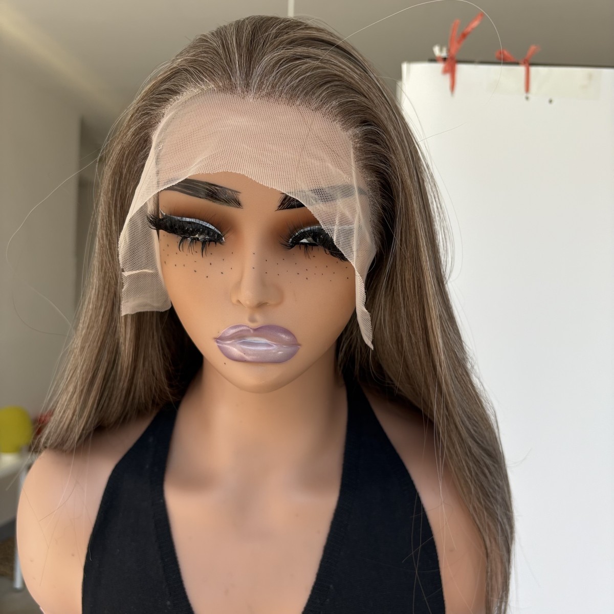 как выглядит Frontal Lace Wig Synthetic Hair Brown mix Blonde Long Straight Natural фото