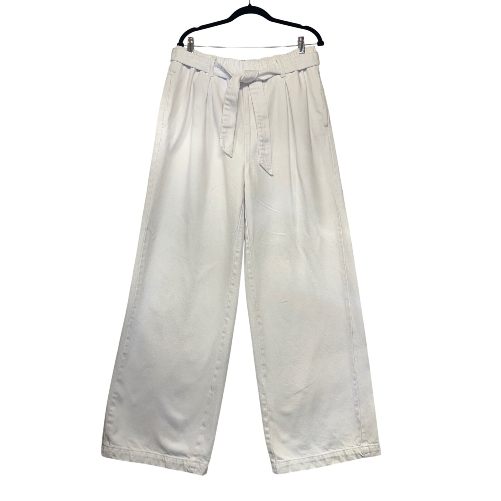 как выглядит Lands End White Tall High Ridge Twill Pull On Pleated Wide Leg Pants M/T 10-12 фото