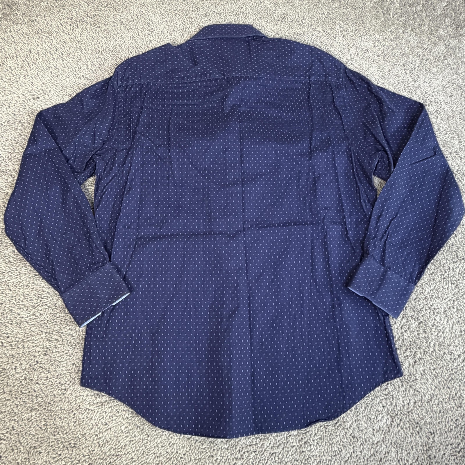 как выглядит Bugatchi Uomo Dress Shirt Mens L Blue Geometric Cotton Long Sleeve Button Up фото