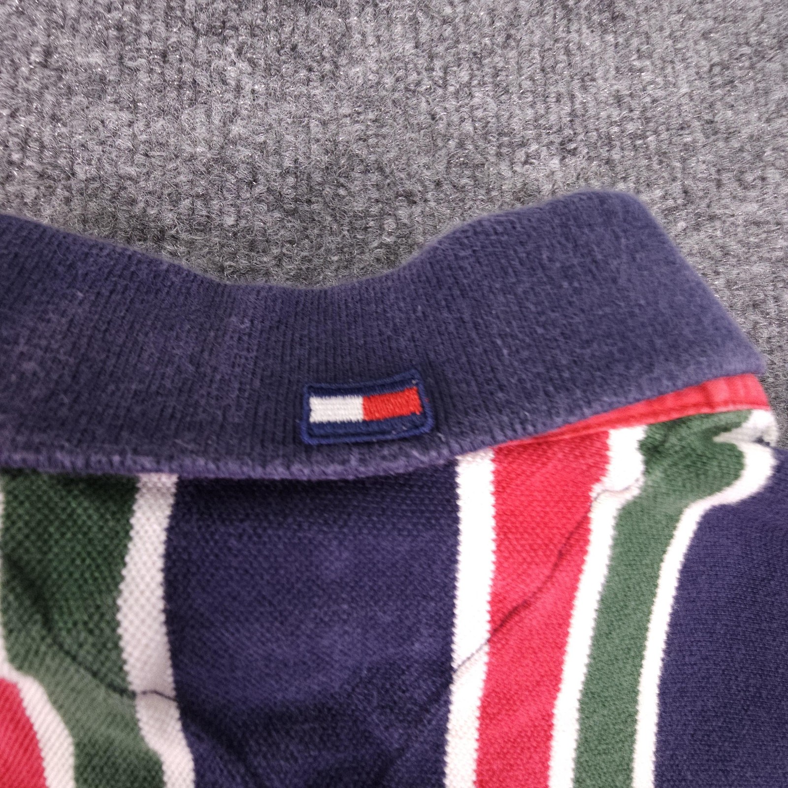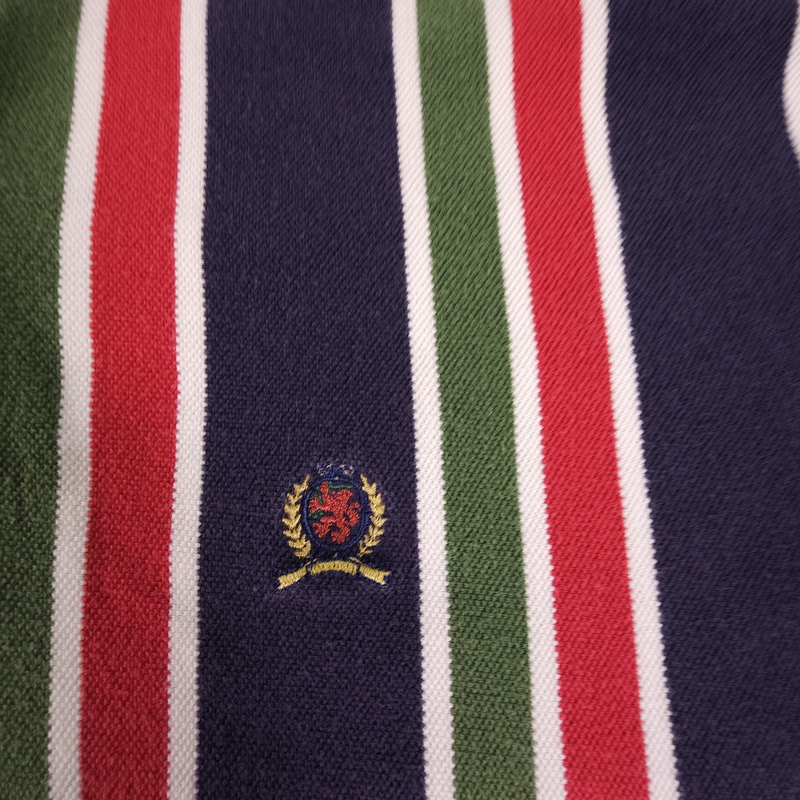 Tommy Hilfiger Polo Shirt Mens XL Navy Red Green Striped Crest Classic Preppy