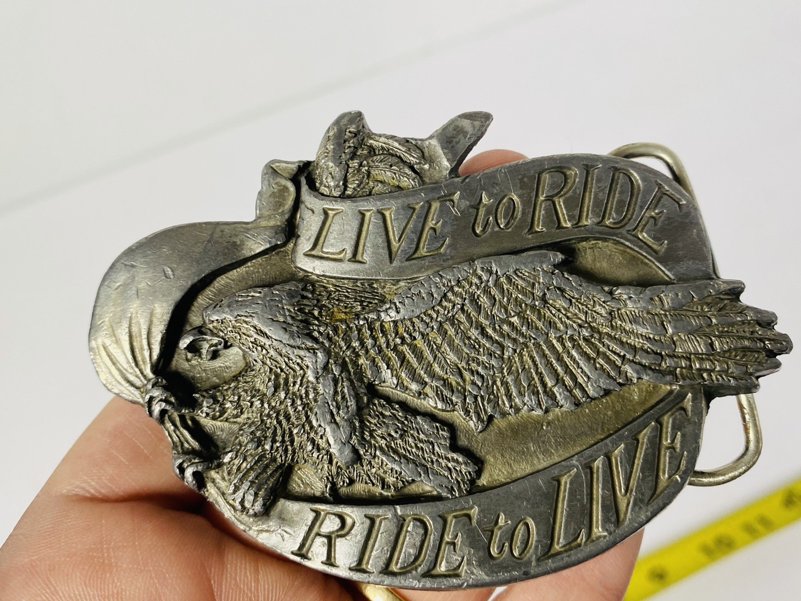 Live to Ride to Live Eagle Vintage 1981 Bergamot Belt Buckle Biker Motorcycle