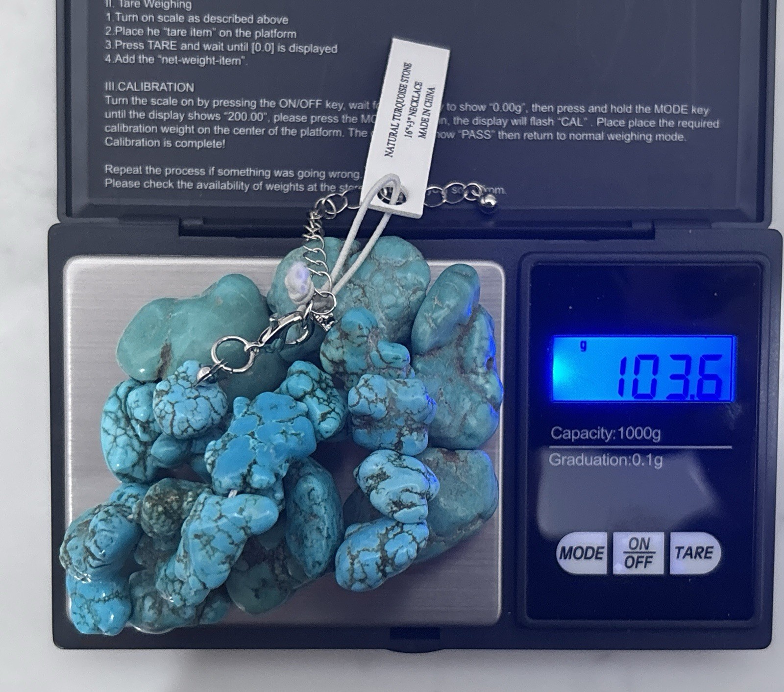 Turquoise Nugget Stone Necklace Chunky Statement Blue Southwestern Boho NEW