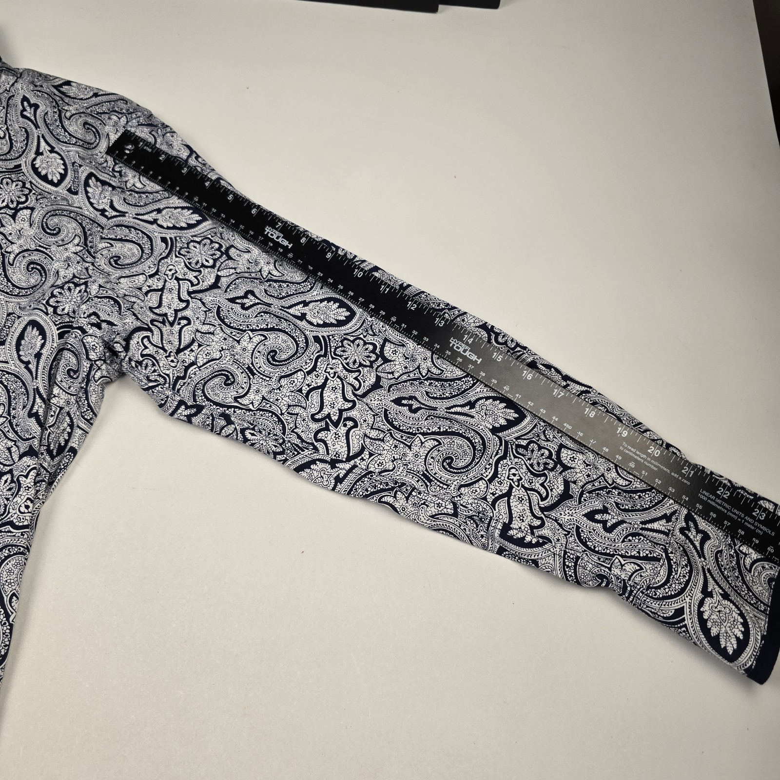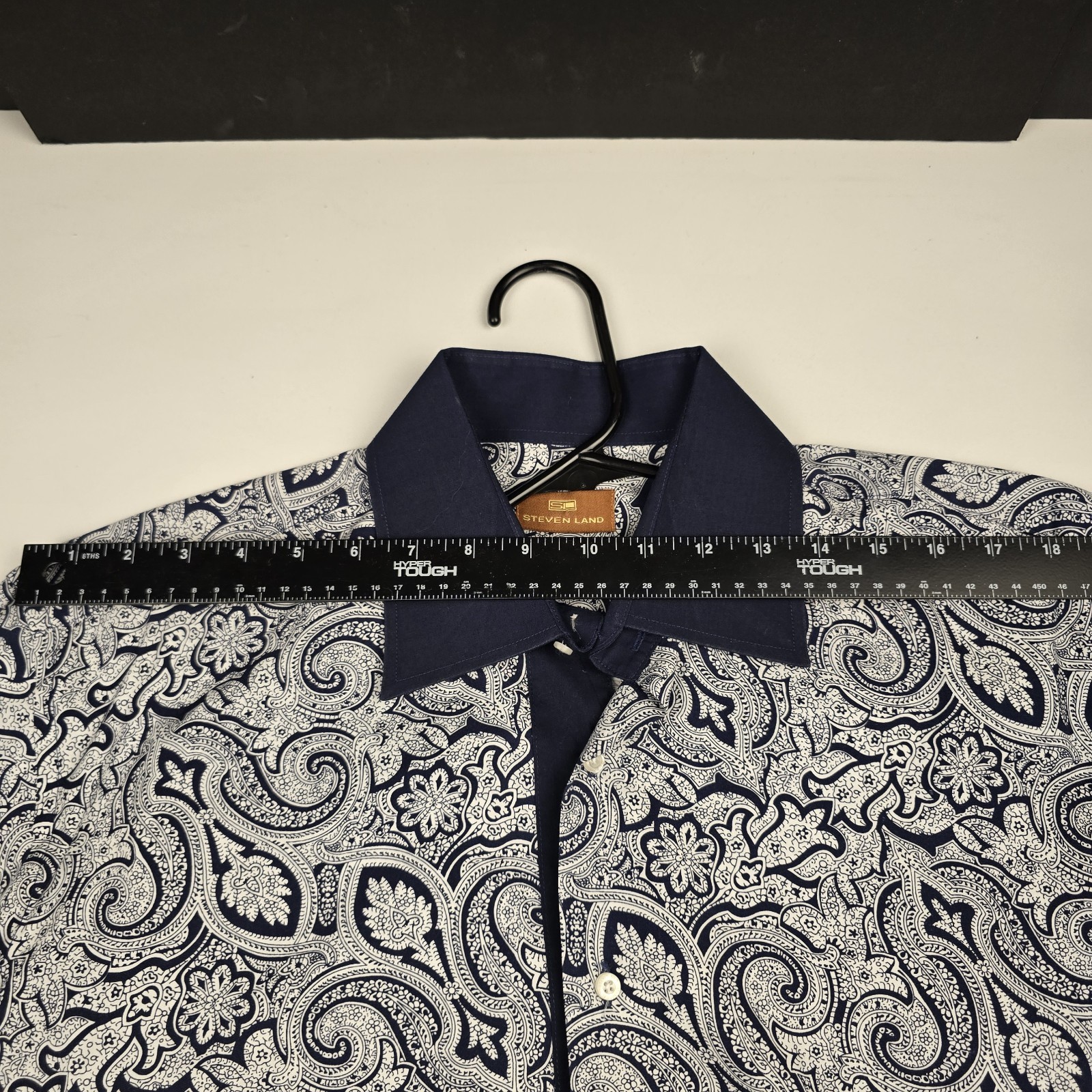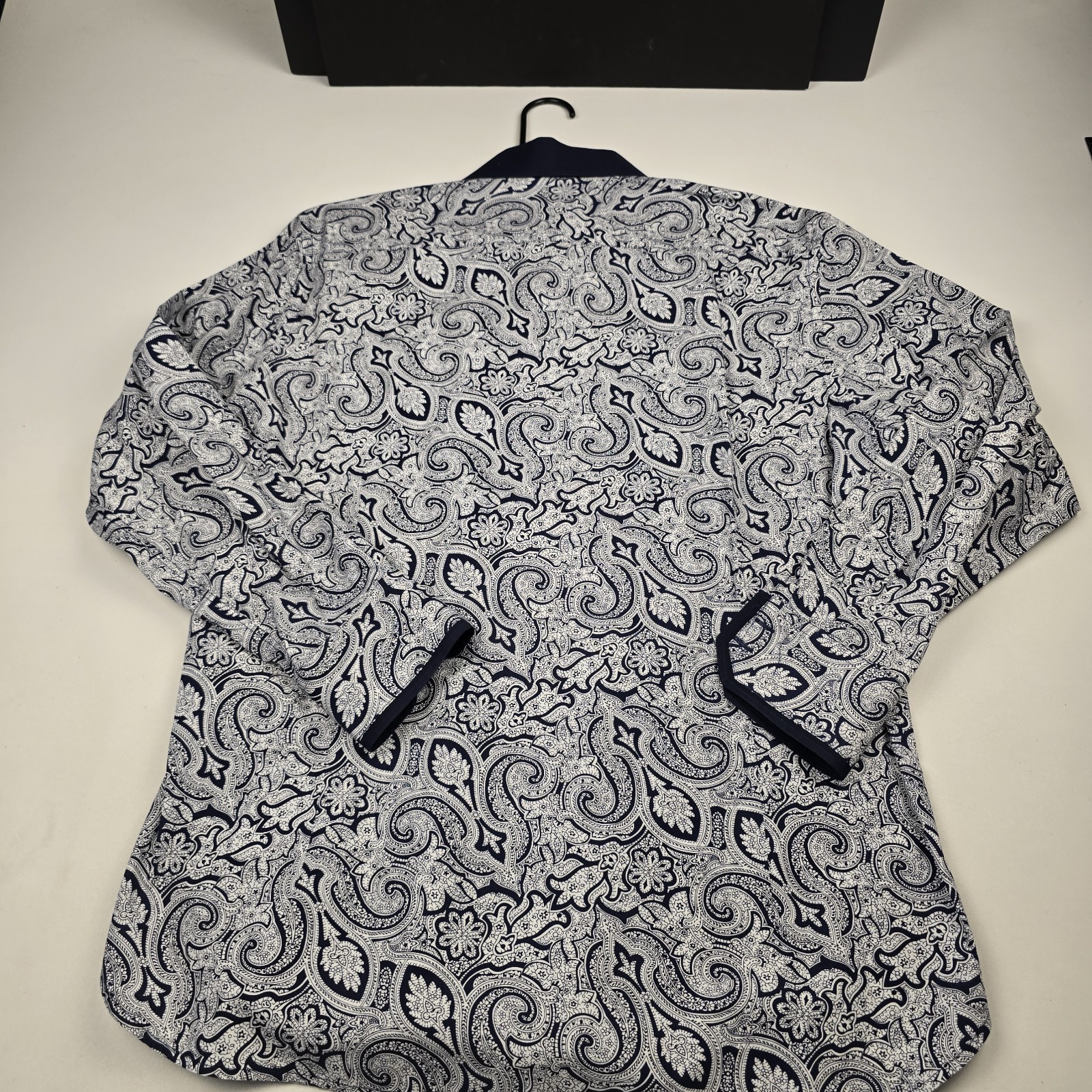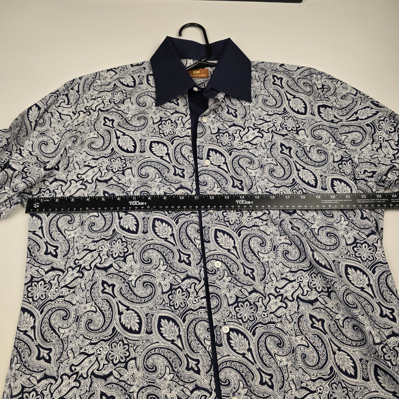 как выглядит Steven Land Dress Shirt 16.5 34-35 Blue/Gray Button L/S Paisley French Cuff фото