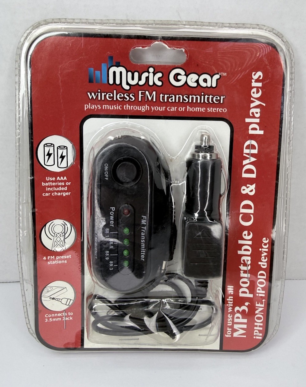 Music Gear Wireless FM Transmitter for use with MP 3 Portable CD DVD players iP