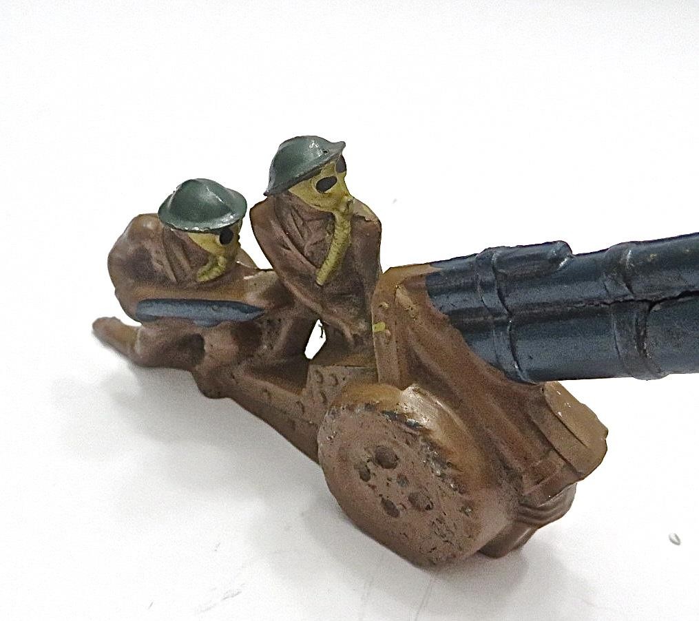 как выглядит Vintage Barclay Manoil Howitzer/Artillery 2 Soldier Team In Gas Masks Loading 2 фото