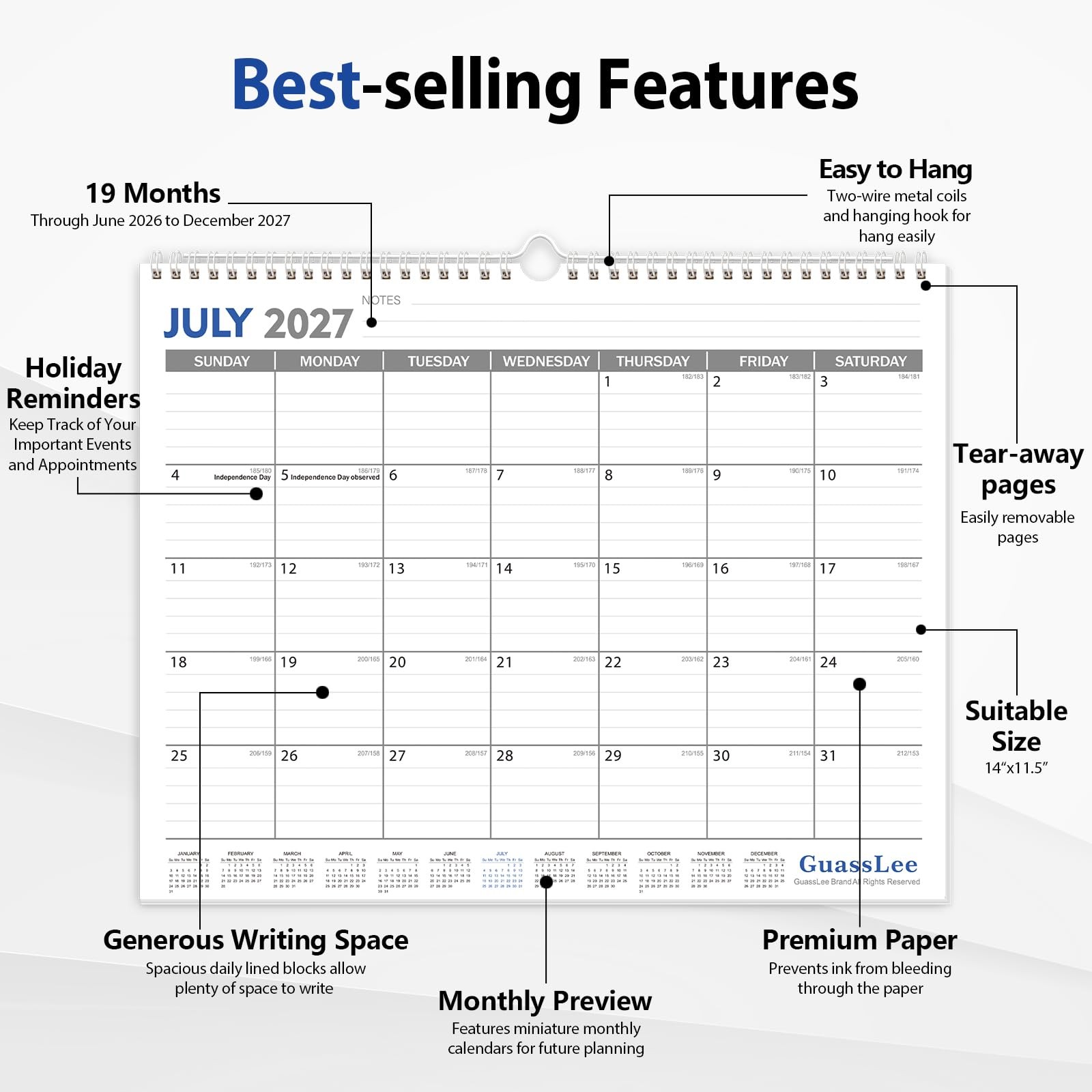 Wall Calendar 2026-2027 Hanging Calendar from June 2026 to December 2027 Set