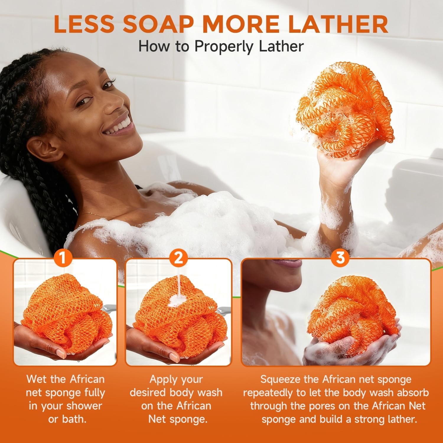 2 Pieces African Net Sponge Authentic, Durable Back Scrubber Washcloth for Showe