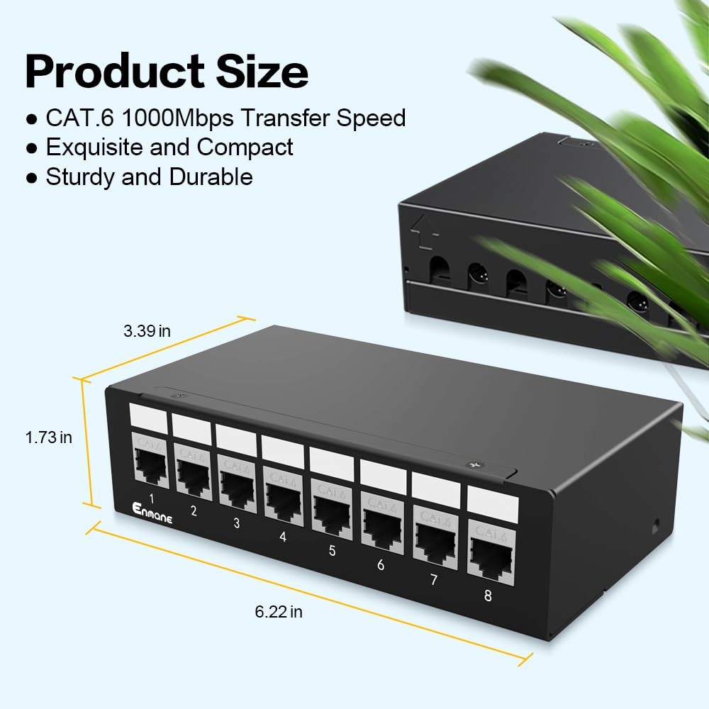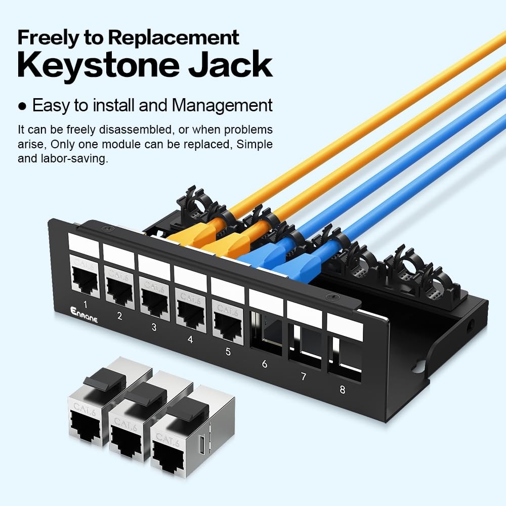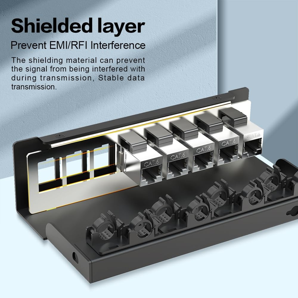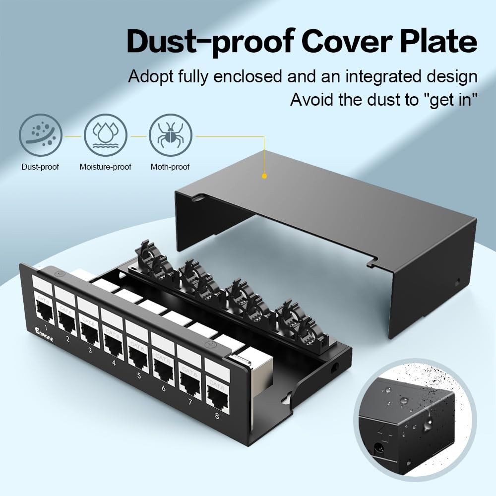 8 Port Patch Panel CAT6 Keystone UTP Network 1U Shielded Rack Wall Mount