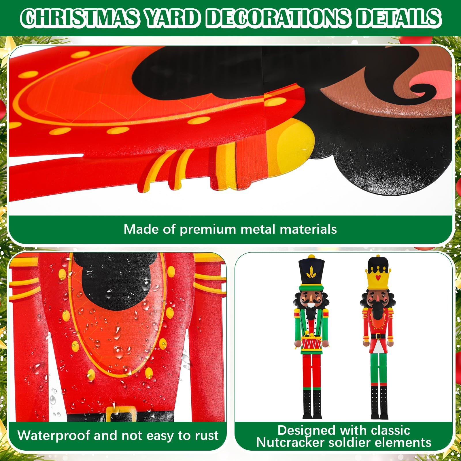 GlikCeil 2pcs 6ft Large Black Royal Metal Christmas Nutcracker Red, Green