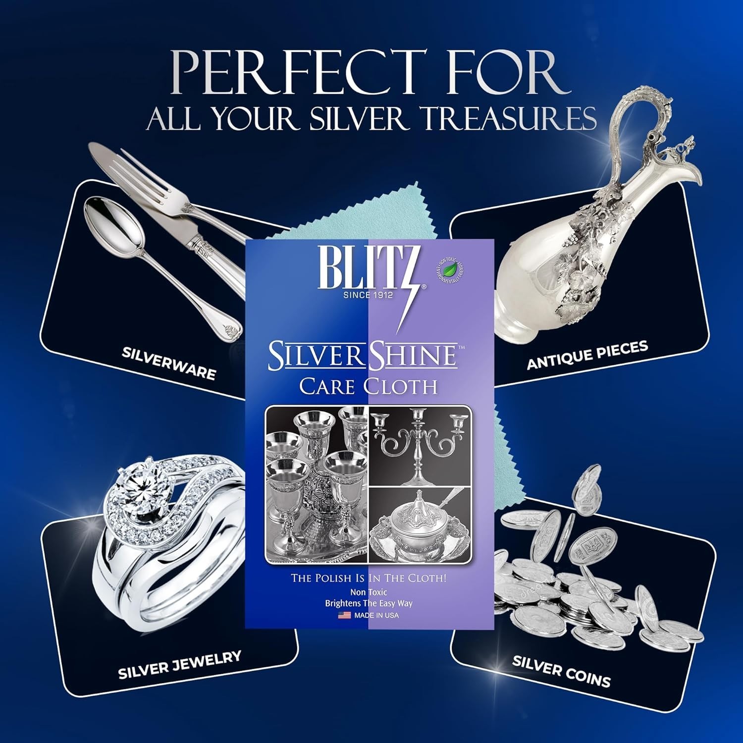 Luxury Silver Care Polishing Cloth - 12''x15'', Anti-Tarnish Non-Abrasive