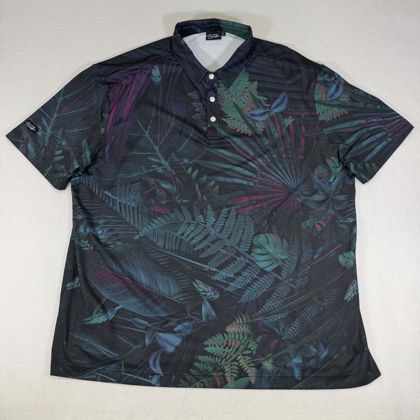 Sunday Swagger Polo Shirt Mens 3XL Tropical Print Short Sleeve Black Green