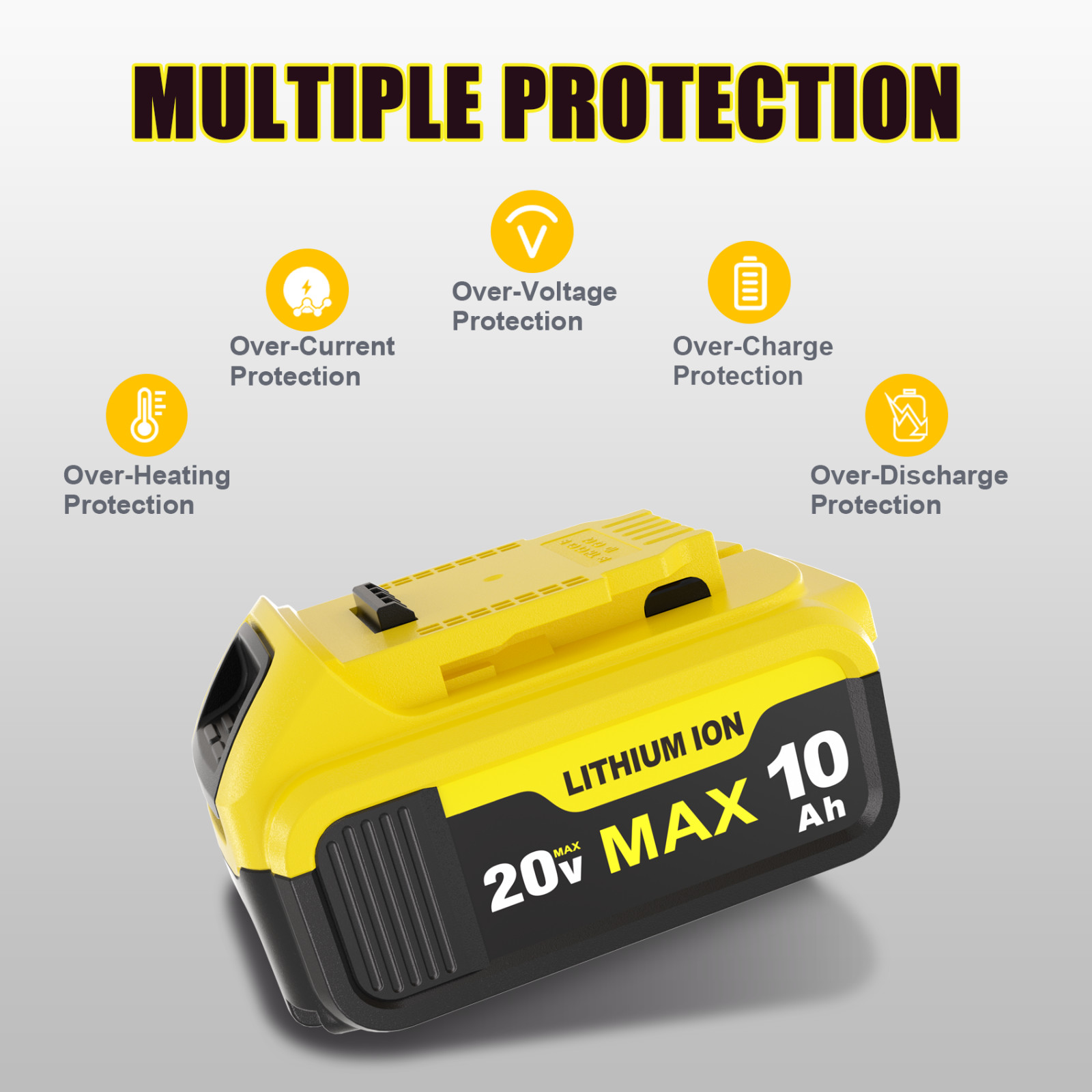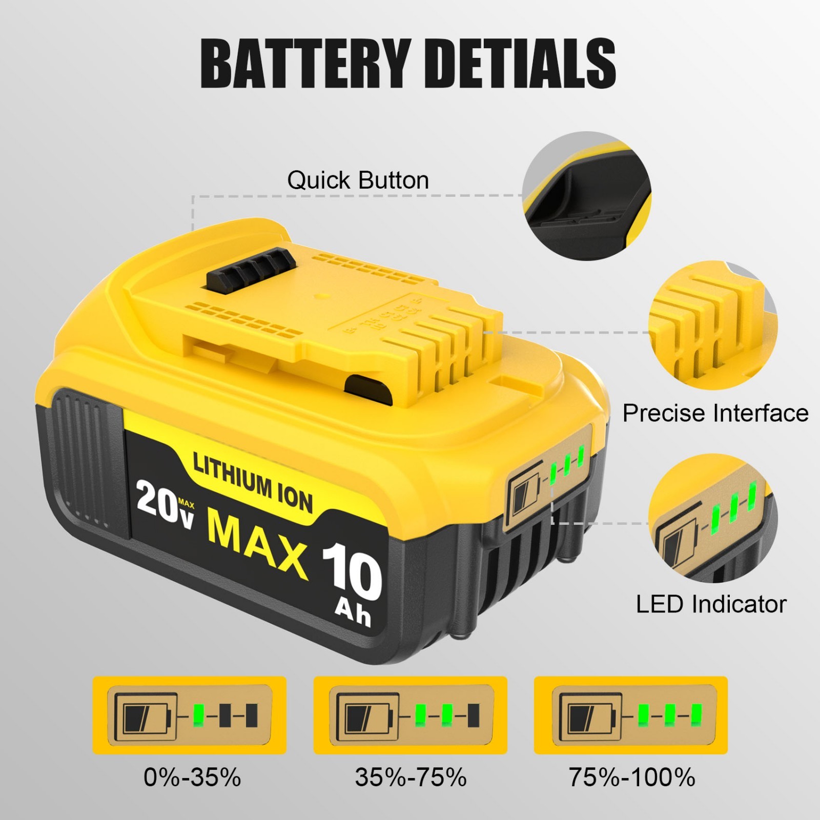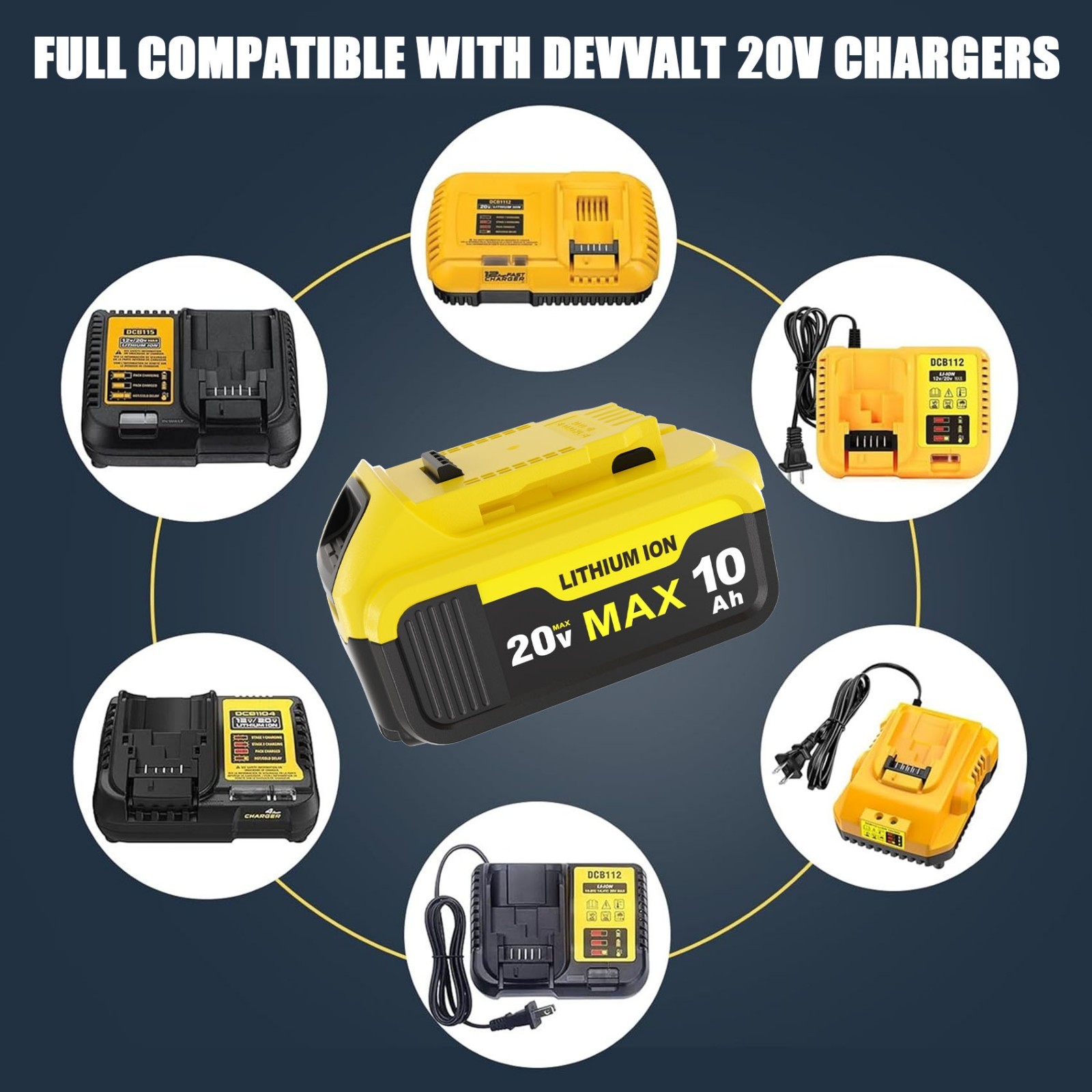 как выглядит 4 Pack 20V 10.0Ah Battery for De walt 20 Volt MAX Batteries DCB200 DCB201 фото