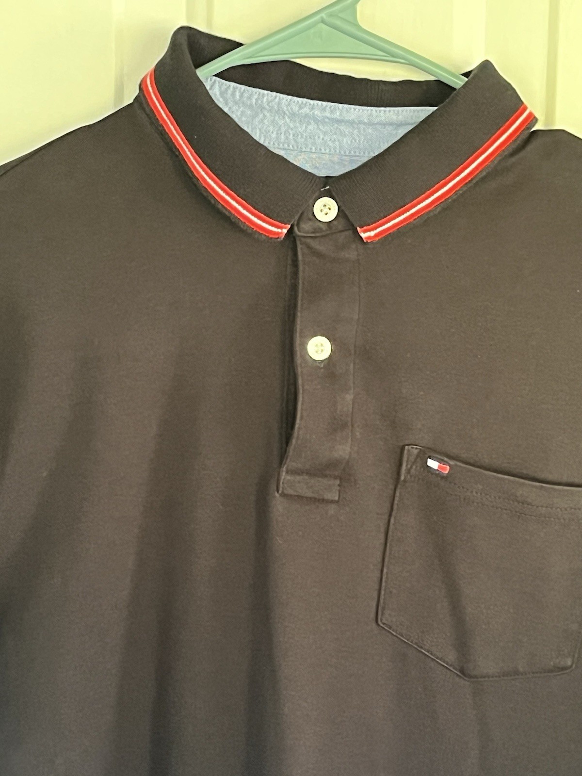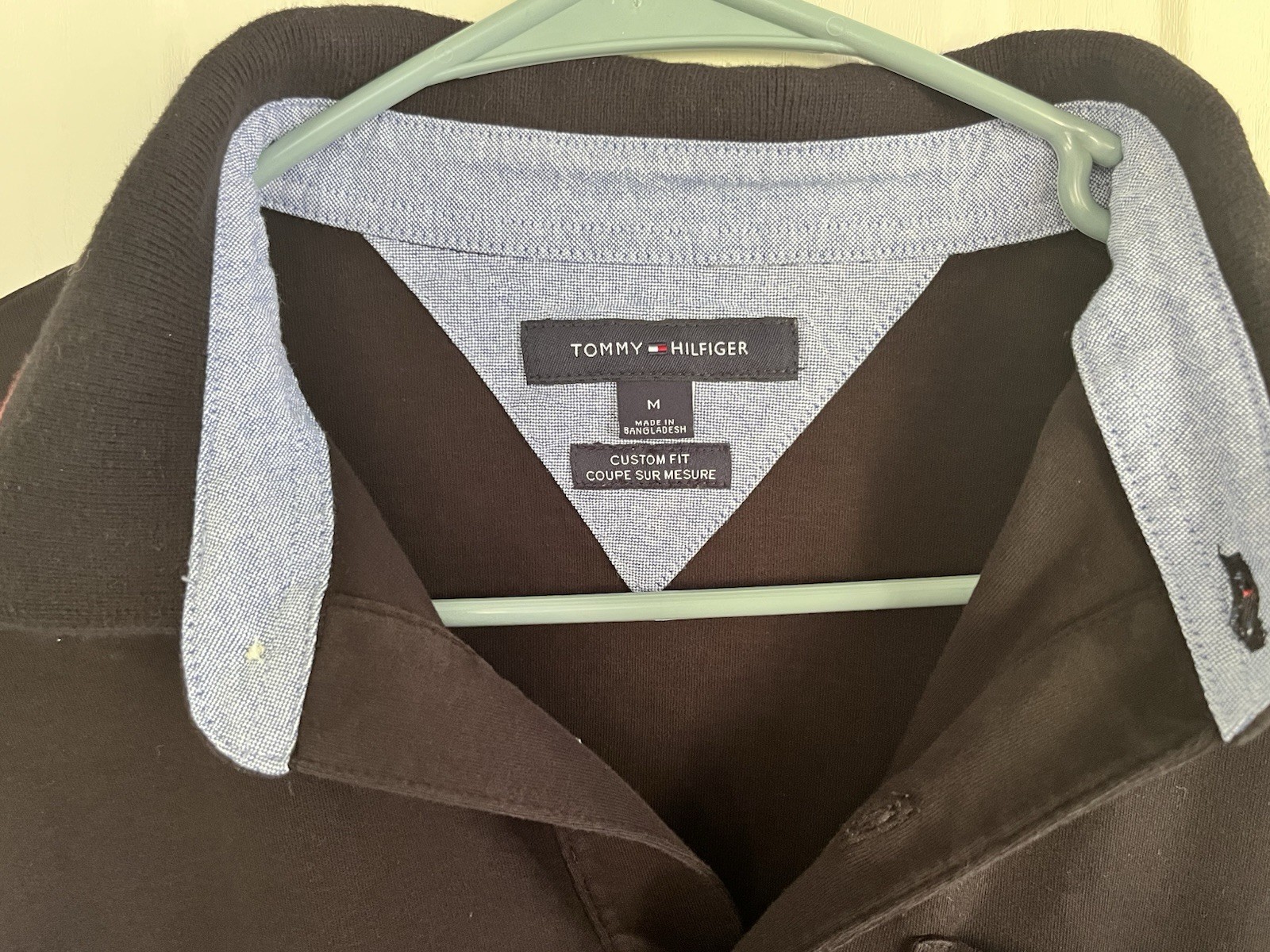как выглядит Tommy Hilfiger Polo Shirt Mens Size Medium Blue Red Stripe Casual Short Sleeve фото