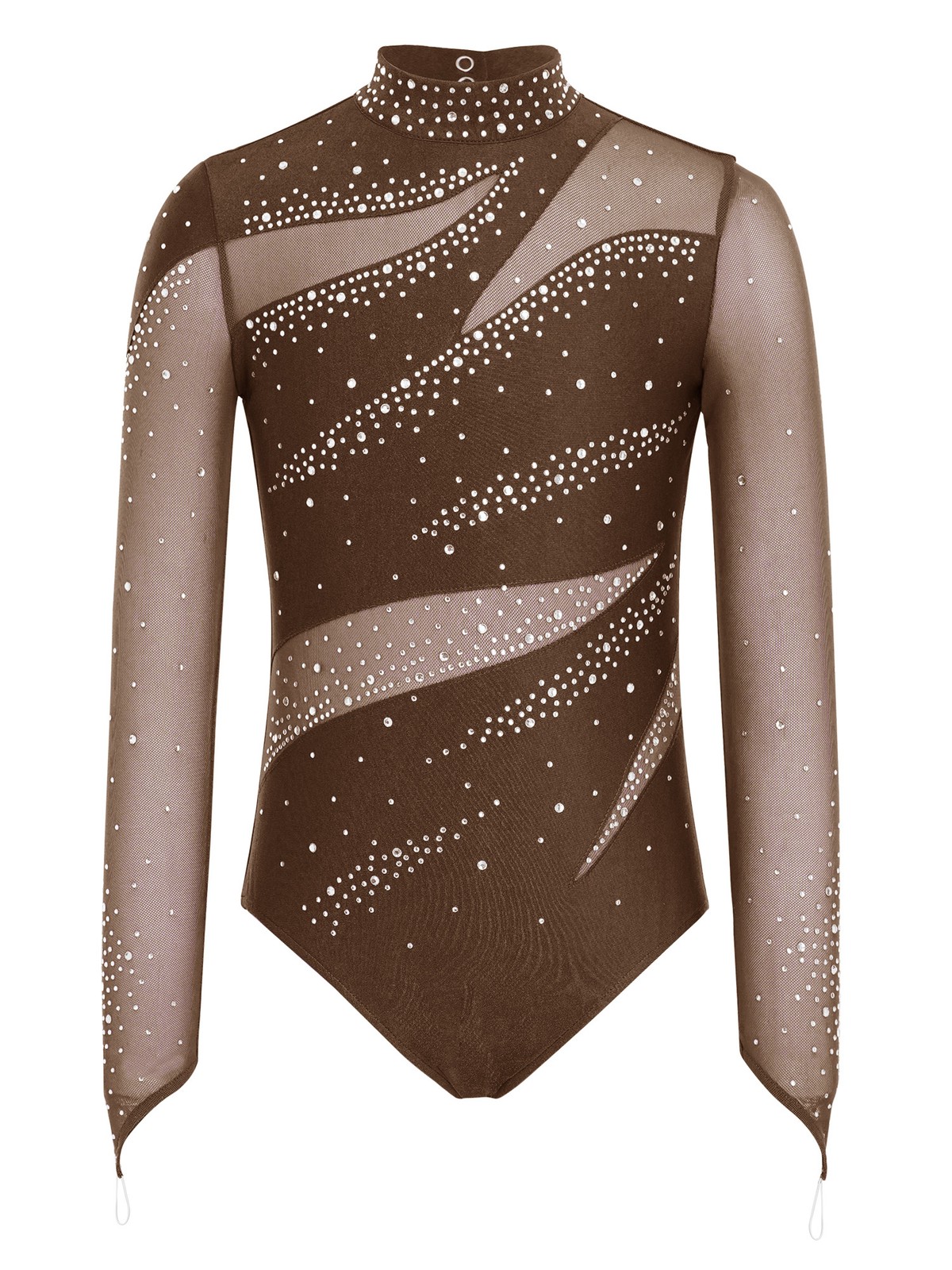 Kids Girls Bodysuit Stage Leotard Tumbling Dancewear Mesh Dance Glittery Ballet