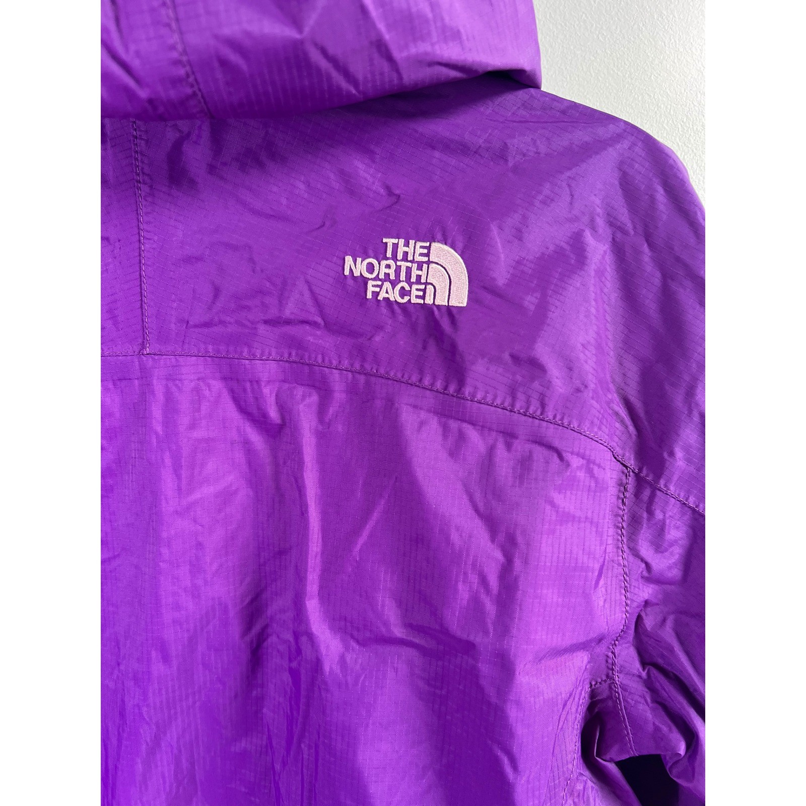 как выглядит The North Face HyVent Purple Kids Rain Jacket Hooded Waterproof Sz XL 18 фото