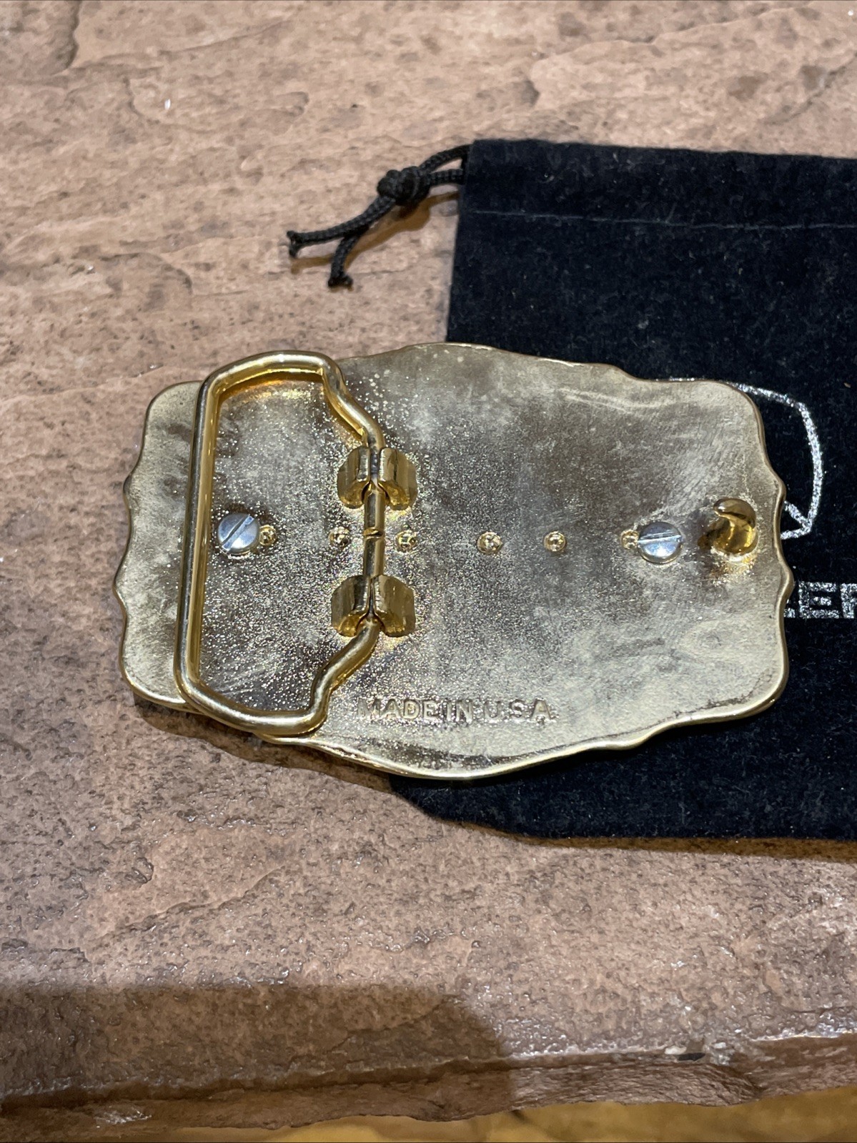 John Deere Belt Buckle Made In USA Gold Tone Around Green/Gold Deer Trademark