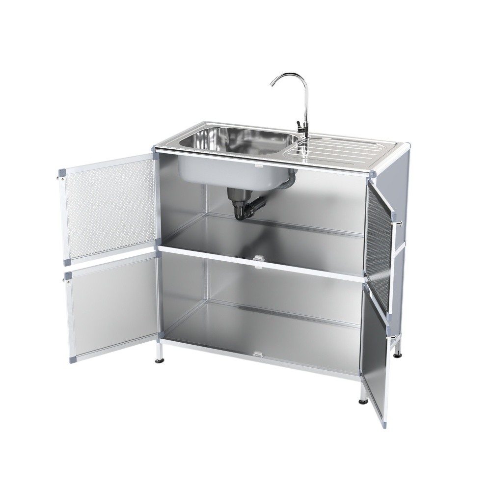 Freestanding Laundry Utility Sink Cabinet, Stainless Steel Basin Storage Faucet