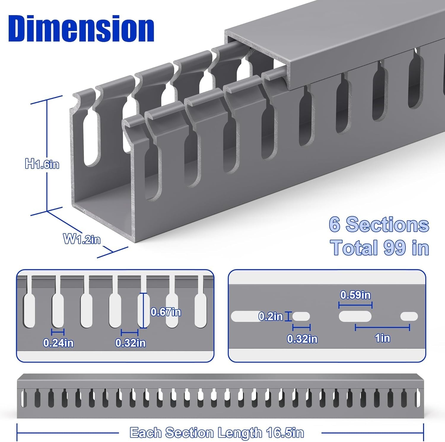 H1.6in W1.2in Professional Server Rack Cable Management Raceway, 99in 6X L16....