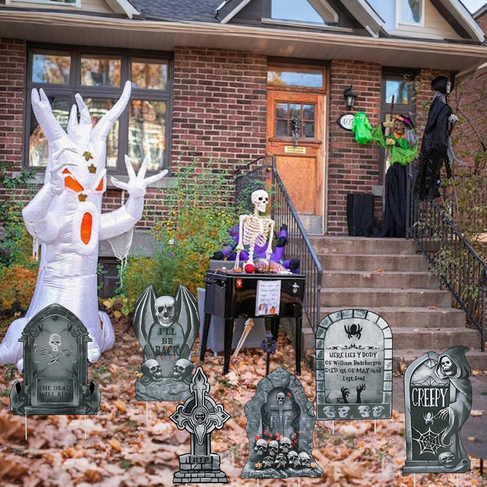 Halloween Tombstone Yard Signs with Stakes Large Eerie Graveyard Design 6 PCS...