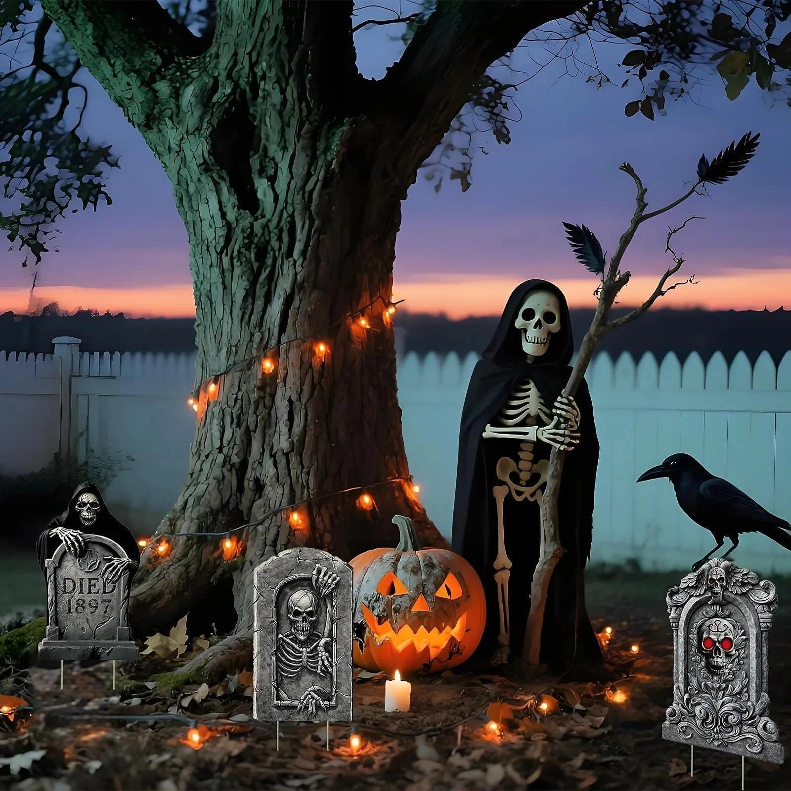 Halloween Death Tombstone Yard Signs, 6 Pcs Spooky Skeleton Skull Outdoor Dec...