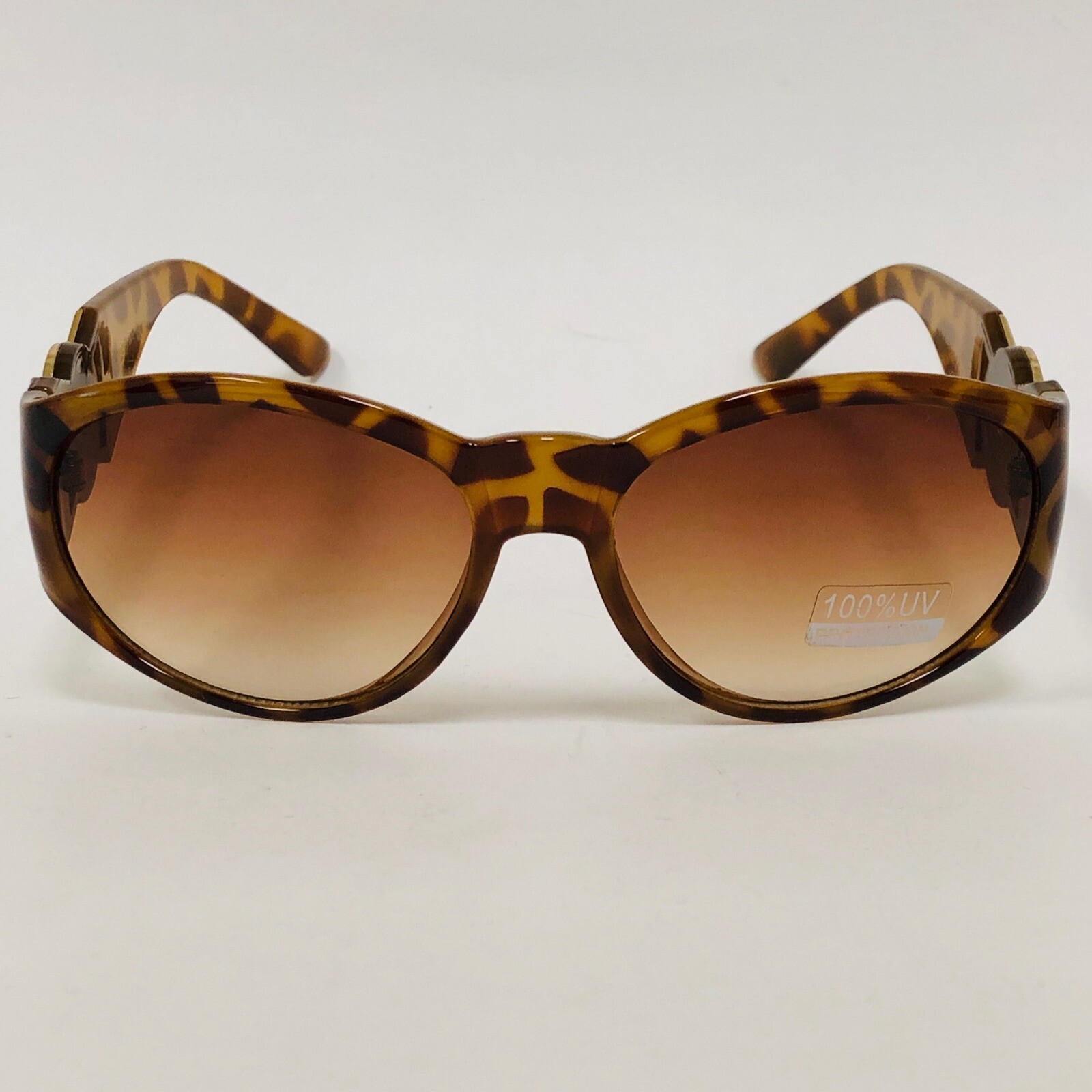BROWN TORTOISE GOLD LION HEAD MEDALLION SQUARE SUNGLASSES RETRO DESIGNER FASHION