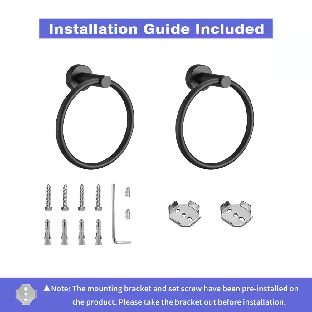 2-Pack Wall-Mounted Towel Ring in Matte Black