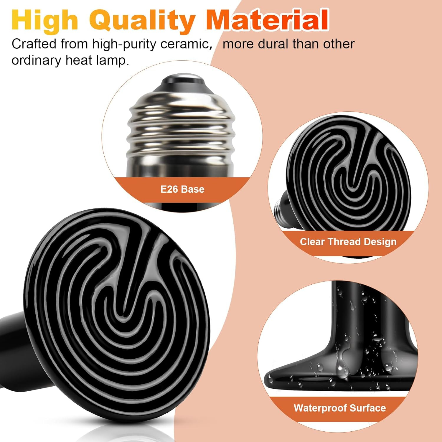250W Ceramic Heat Emitters - 2Pack Reptile Heat Lamp Bulbs, No Light Emitting, I