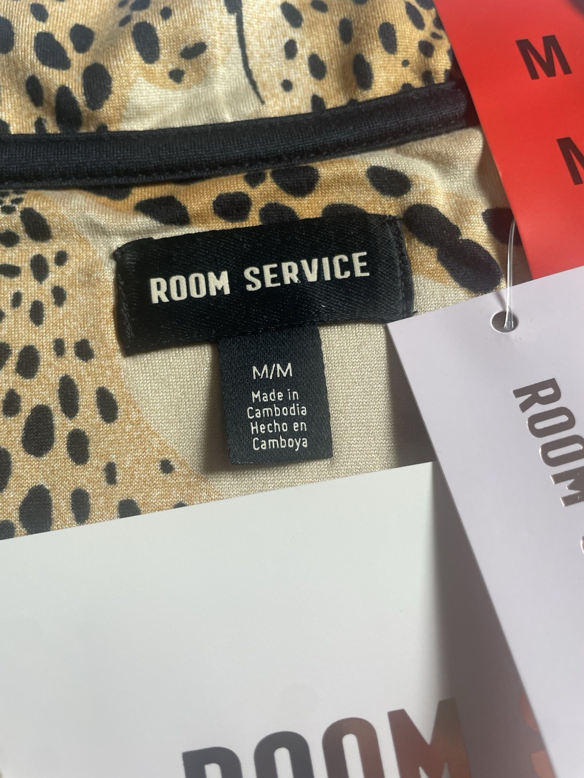 Room Service Women's 2-piece Notch Collar Pajama Set, Cheetah tan Size M