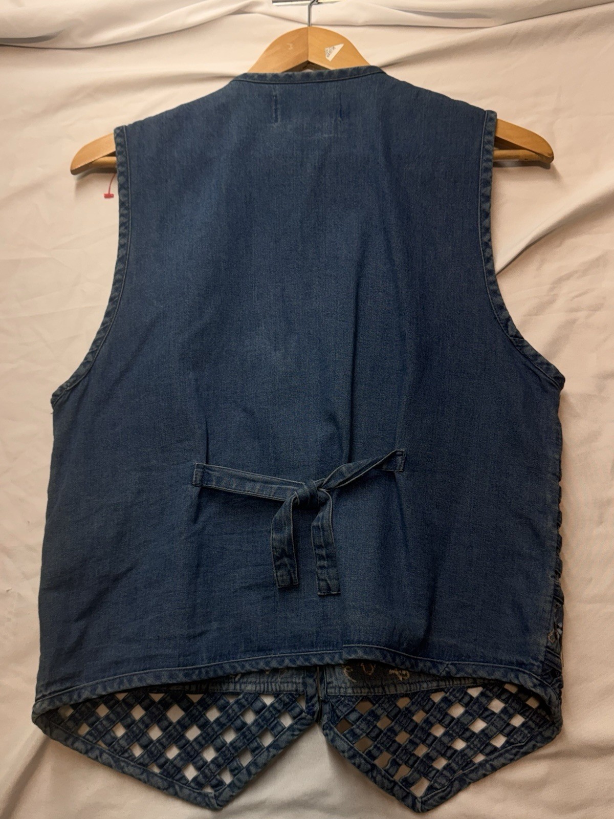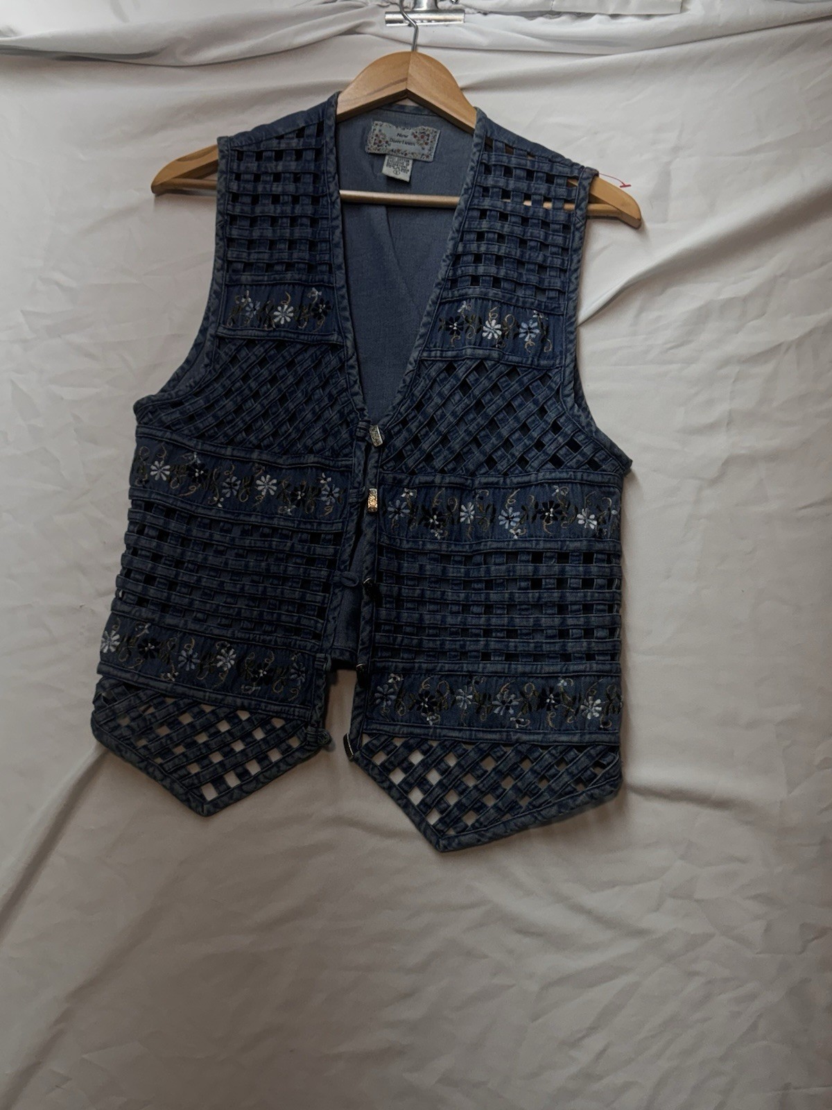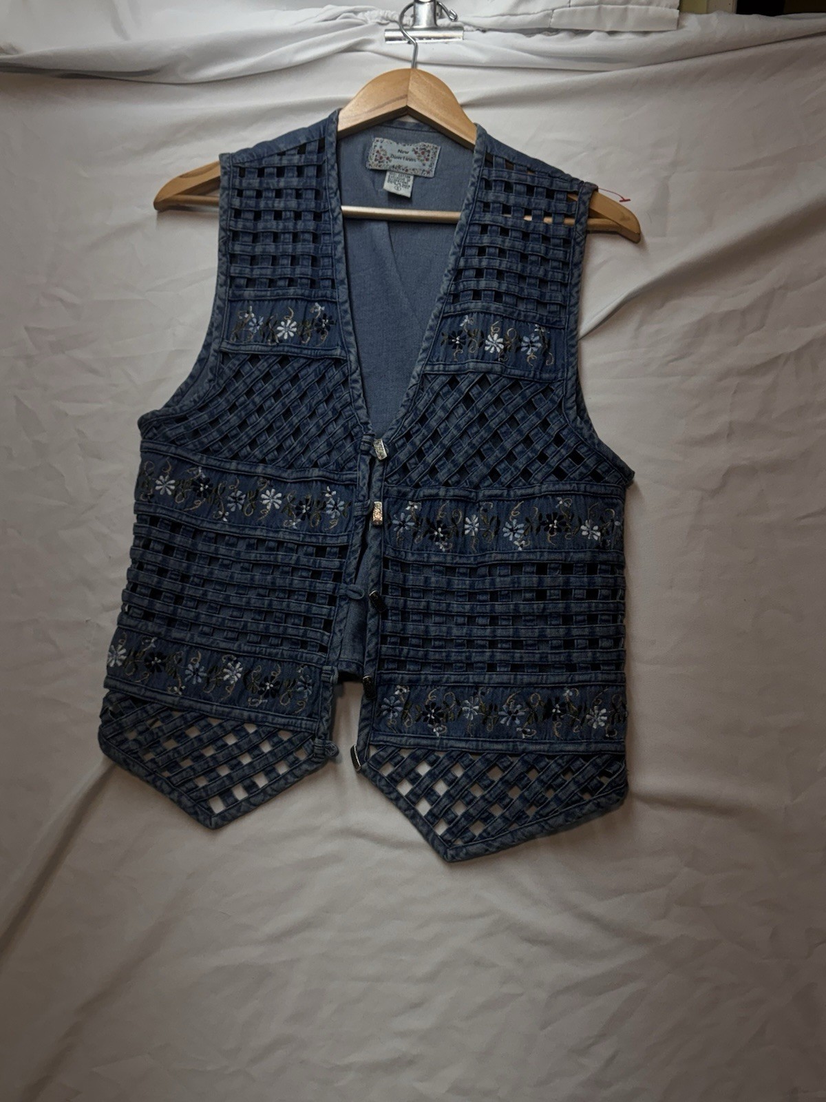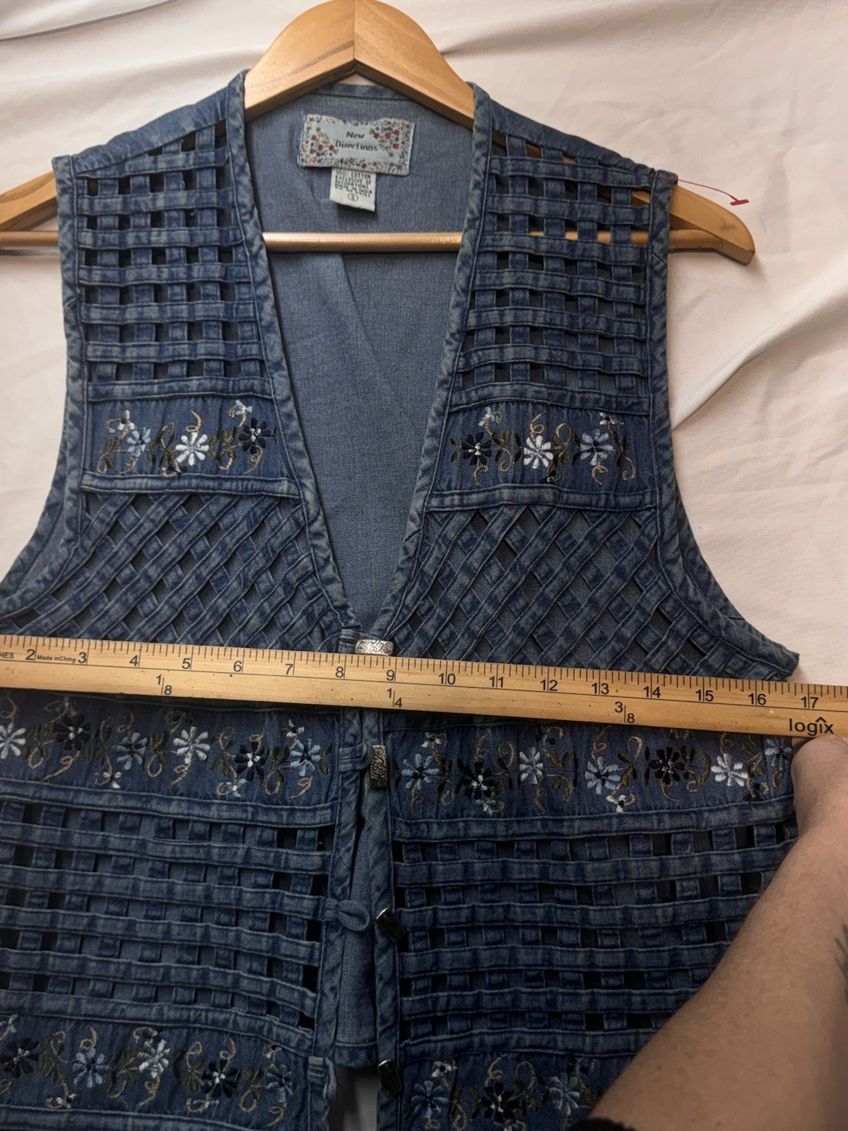 как выглядит New Directions Denim Embroidered Floral Basket Weav Vest Vintage Sml Cottagecore фото