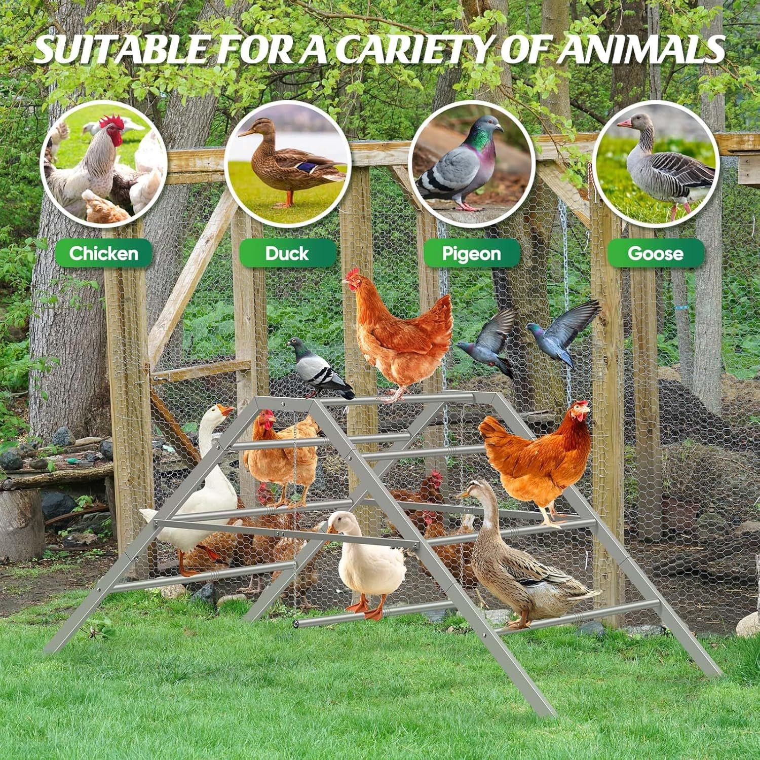 Sturdy Chicken Coop Perches with Swing and Roosting Bars for Happy Chickens
