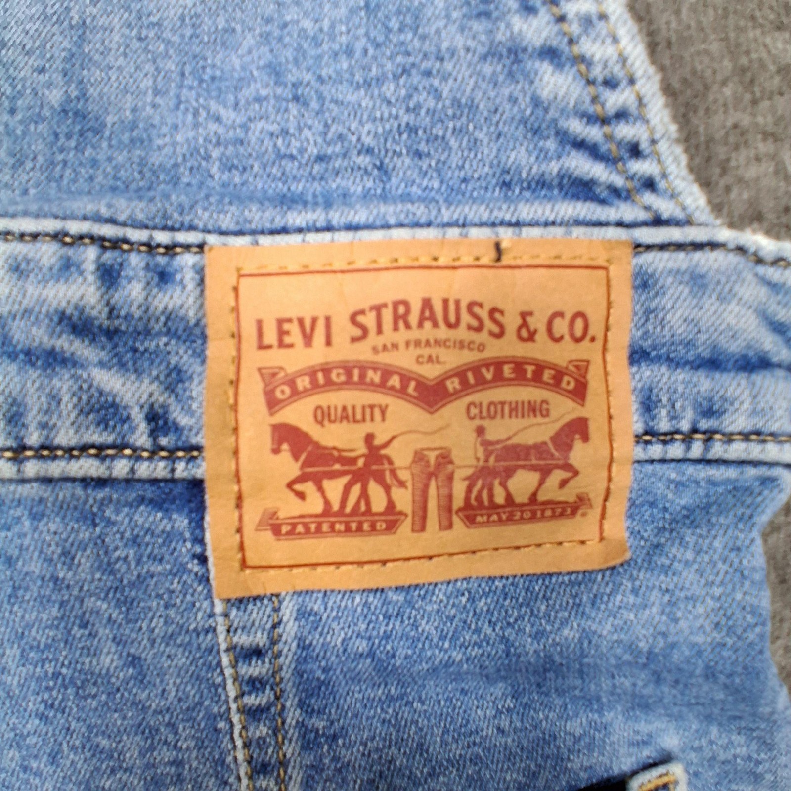 как выглядит Levis Overalls Womens W29 Blue Denim Button Front Bib Relaxed Fit Workwear фото