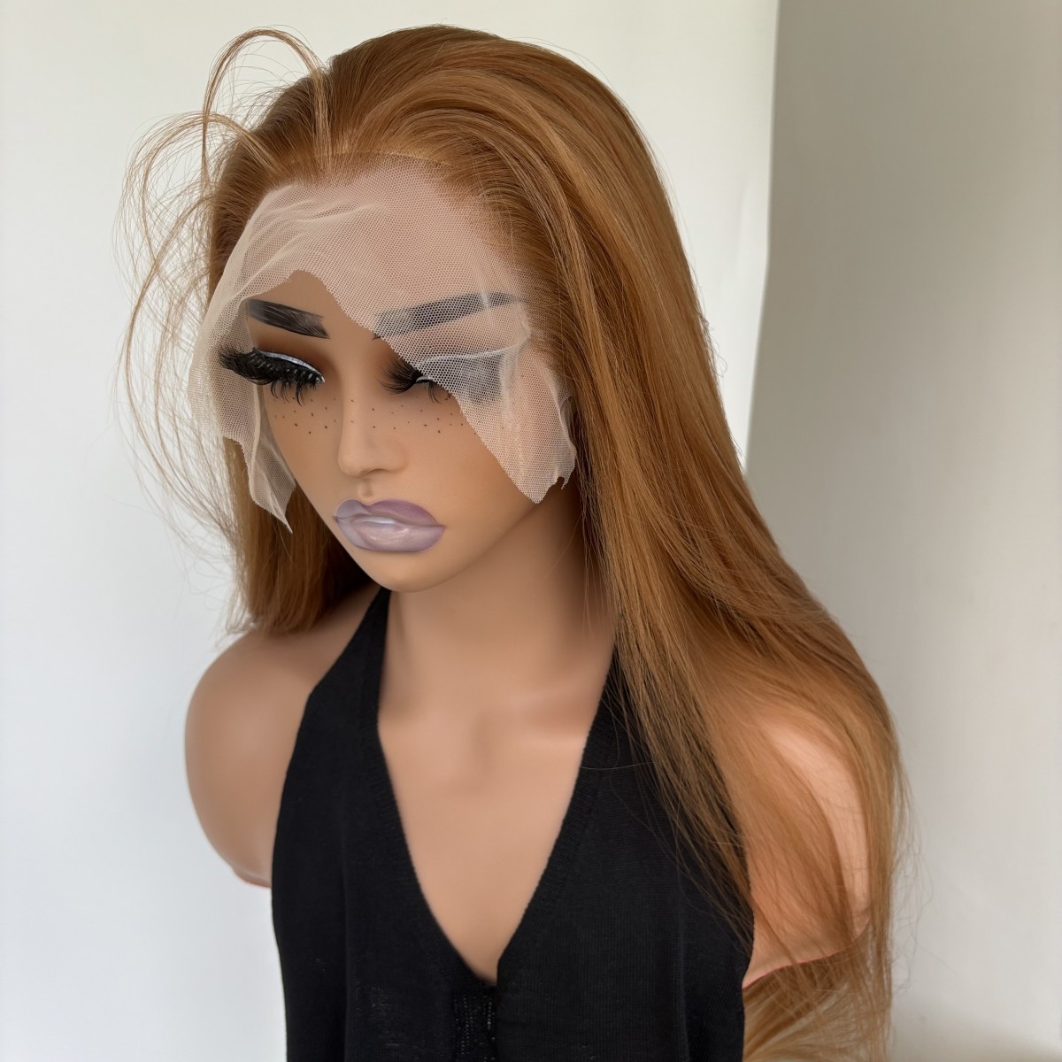 Ginger Brown Women Synthetic Hair Heat Resistant Lace Frontal Wig Long Straight