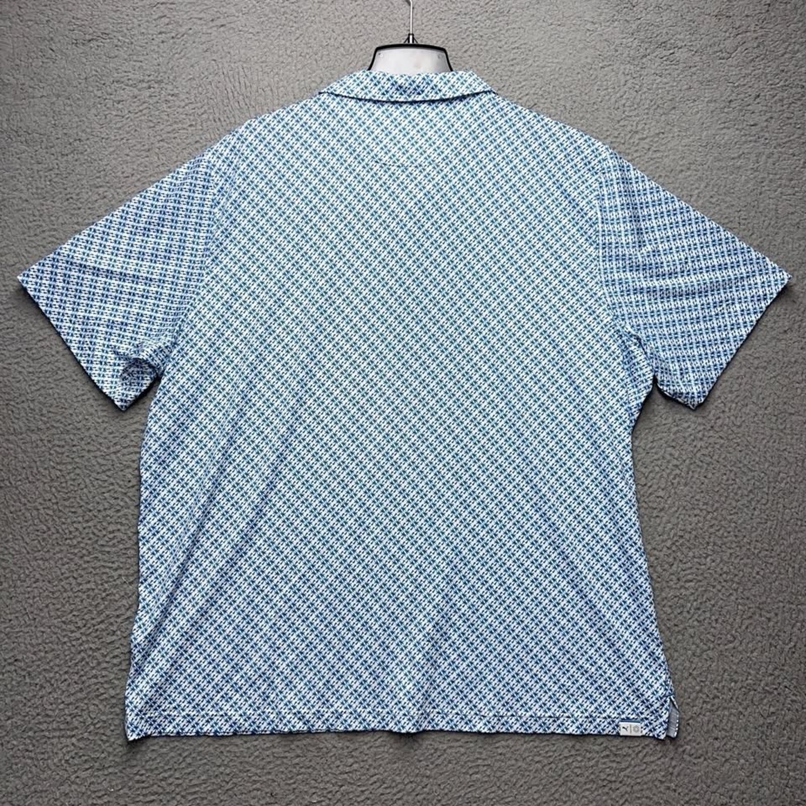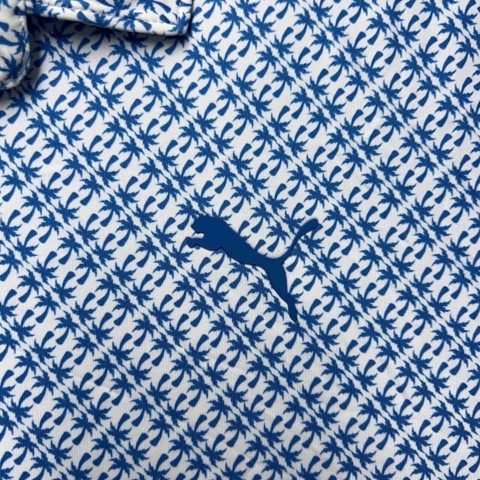 как выглядит Puma Polo Shirt Mens 2XL White Blue Palm Tree All Over Print University Park фото